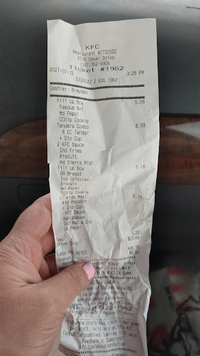 Read moreThis is the 13th KFC that I've been to. I am trying to eat at as many KFC's across as America, and then the world, as I can. I also ate here on a Friday. So I was a little scared since my 13th KFC.... on a Friday. Get what I'm saying? I also experienced sticky floors... but that's only because I accidentally dropped my soda. (Friday the 13th vibes, big time.) I was so embarrassed. Before I could even play it off like it wasn't me who dropped the drink, an employee immediately came out and cleaned up my mess and reassured me it was OK. Victor is right about the food not even being close to hot.... but that's only because after I spilled my drink I was literally too embarrassed to eat there so I asked for a box, took my meal and booked it. But by the time I got back to the hotel, regained my composure, and finally felt okay enough about the situation to build up an appetite again, it had been about an hour and by that time, my meal was cold. It tasted just as good cold though. Shoutout to the employee who played it off like it was totally normal for customers to dump large drinks all over the floor. You made me feel a lot better about the situation. Absolutely amazing customer service. Even gave me a new cup. I highly...