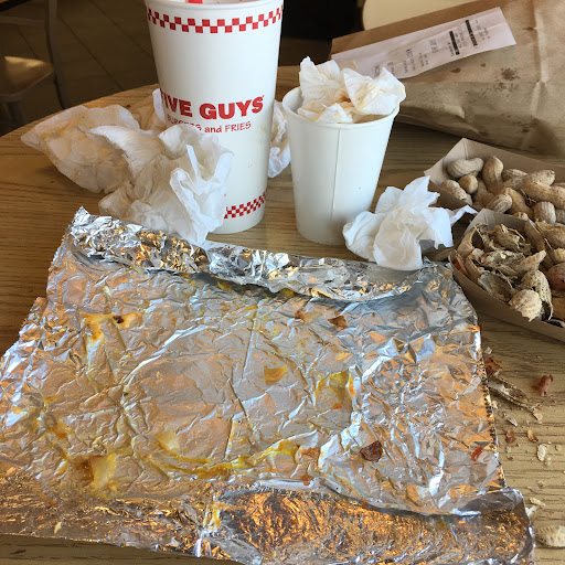 Read moreTHIS IS A PUBLIC SERVICE ANNOUNCEMENT: I BELIEVE I HAVE LOCATED THE BEST FIVE GUYS ON THE PLANET. So I placed my order, got some peanuts and sat down. Noticed that it was taking a little bit longer than usual to hear my number called. Store wasn’t very busy and so I wondered what the holdup might be. A few minutes later, I had my answer. Apparently, the order took so long because the skilled technician assembling this incredibly delicious, massive and perfectly prepared burger took the time to cram as many toppings on to it as they possibly could. YES PLEASE! Honestly, I have never had a Five Guys burger this good. Also, a pro tip for my fellow low-carb dieters who also have difficulty resisting the fries: order a small fry without a ‘topper.’ That is how they refer to the extra (essentially) double order they dump in your bag once the cup is placed inside. Minimizes the carbohydrate damage. Store was otherwise clean and efficient like virtually every other one I’ve been to. But seriously, the amount of toppings on this bad boy really impressed me!...