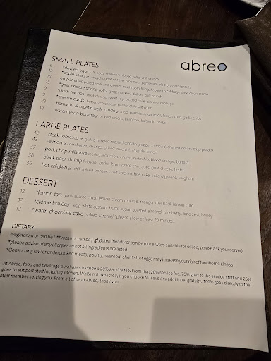 The ambiance at Abreo is cozy and inviting, making it the perfect spot for a delightful meal with friends, family, or even a romantic dinner with a loved one. The staff was friendly, attentive, and knowledgeable about the menu, which made the dining experience all the more enjoyable.