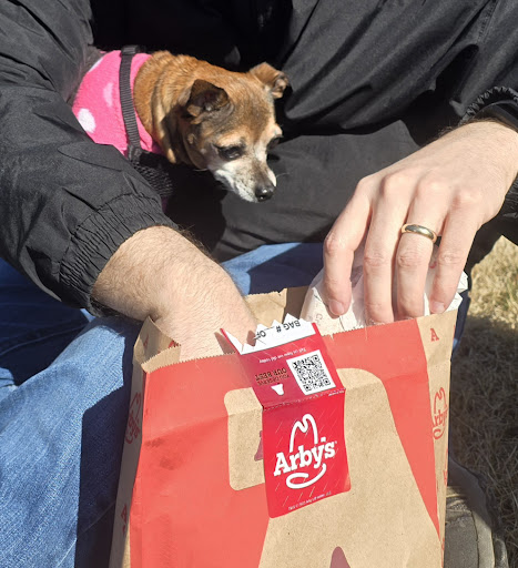 I honestly don't usually review fast food restaurants, but wanted to give a shout-out to this one. It's an emotional day for us, as we're saying goodbye tomorrow to a beloved little dog. We know she's always begged hardest for Arby's sandwiches, so we stopped here, picked up our mobile order, and because the weather was finally beautiful, sat on the grass verge to give her this treat.