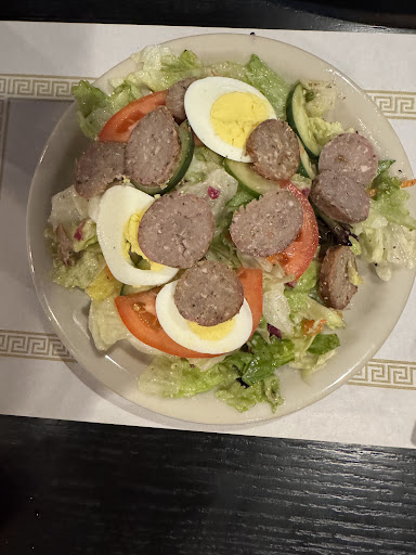 It came with a house salad which had giant pieces of sausage and egg in it. Normally I pick the egg out of my salad and eat it separately, but it really worked here. Very nice balance.