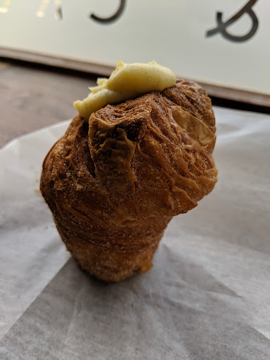 I had been hearing rave reviews about Crust & Crumbles and was finally able to give it a visit. Opening the door you are immediately welcomed by the scent of fresh baked goods. The white subway like floor tile fits the quaint shop. The menu is listed on a brown paper bag which pulls you in to read everything they offer. The choices are endless: scones, croissants, sourdough bread, fruit filled patries... I finally decided on the vanilla scone and I was not disappointed. It was scrumptious! The icing was creamy and melted in my mouth. The scone itself was crunchy on the outside but soft on the inside with a touch of sweetness. I would highly recommend! I almost wish I would have visited on an empty stomach so i could have tried the almond croissant. Next time for sure!