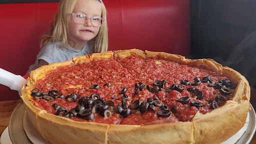 We arrived on a Thursday around 2:15pm. We weren't sure if we should seat ourselves because nobody greeted us as we came in, so we perused the menu at the podium and I spoke loudly to my family until someone heard me and apologized profusely for not attending to us immediately. The establishment was empty for the most part, besides another table with some patrons eating. Later, another couple arrived, but besides them, it was mostly empty. We were seated at a booth and started our order with sodas and water as well as mozzarella cheese triangles. We also ordered a large deep dish pizza with added olives, pepperoni, and mushrooms on half of it. The menu says it takes 45 minutes to cook, and it did. The mozzarella triangles pulled apart with cheesy goodness, and the triangles came with marinara sauce. When the pizza arrived, it was everything we had hoped it would be. There were so many flavors, a crispy crust, and the toppings were perfect in quantity. Deep dish is filling, so we couldn't eat much and asked for a box to go. Our server was nice and checked on us a couple times, but I felt like she could have asked us if we needed drinks periodically instead of me having to ask her as she passed us to serve other tables. Other than the service, I was happy with our meal. Whoever makes the pizza here knows what he is doing.