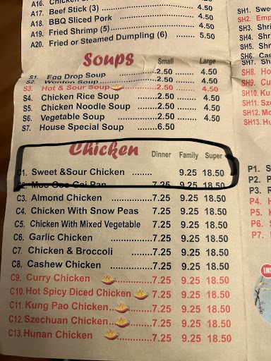 Ā Ā Ā Read moreOrdered sweet & sour chicken and rice. Asked for the smaller of the 2 sizes available. (On my menu as well as the menu online itās Fam & Super.) called back because I got a dinner size order which the lady on the phone clearly doesnāt know her own menu & told me thereās a large size as well & itās on the menu. Iāll add photos. The lady kept cutting me off told me ānext time you should order this wayā rudest Iāve experienced yet for just a simple issue I had paying mind you the same amount for pork fried rice getting less rice in the ālargeā size as I would have on the family size. Iām adding one photo with the at home menu. As if you click on the menu for their location is exactly the same ā2sizesā. But still 2.50$ to upgrade to pork fried rice and get less. Also when ordering chicken on a stick. And you want 3 make sure and say ā1 Orderā not 3 chicken on a sticks because they assume you want 3 orders. $$$$$. Big upsell. Thx but no thanks Iāll go to a diff location on Fridayās...