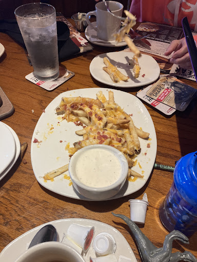 We ordered their cheese fries as an appetizer. Everyone enjoyed them. There was a little too much pepper for my little one though. My husband had an 11 oz. sirloin, fully loaded baked potato, and macaroni and cheese. He eats his steak medium, it was cooked more medium-rare, but he still liked it. He also really liked the bread.