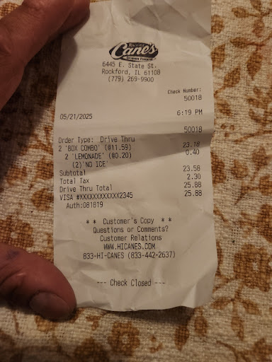As a result of this experience, I have decided to redirect my business to other establishments, such as Chick-fil-A, which I believe genuinely prioritize customer satisfaction and care. I hope Canes will work toward improving their customer service standards to provide a more positive experience for all patrons...