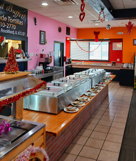 Located of of Auburn st near Central Ave . We came for the Weekend buffet because it had Menudo, posole and tamales. The Menudo and posole had way too many bones in it large bones and little bones that i feel smaller kids could choke on and not enough stock so it was dry. The tamales were good they were moist with a good masa to meat ratio. The buffet was served in metal double-sided serving trays that you could only access from one side of the counter because the other side is for staff and was little difficult to maneuver and access because there were so many people. The music was way to loud that the servers couldn't hear you and had to speak loudly or people closer to them had to repeat what you said. We paid 19.99 for the buffet which was high priced considering the setup and not being able to get to the items in the back of the serving trays because you have to be careful with the lids and hot food but considering it has speciality items like Tameles and menudo maybe about right. There were also slot machines right in The front of the restaurant were people just sat and drank beer and hung out they had a back area of the restaurant where no one was seated I feel like that would have been a better place for the slots as crowded as it was dinning tables would have been better used in the front space and removing that counter and putting an actual buffet space that people could access food from both sides safely without risk of scalding yourself would be better setup. Kids didn't like the buffet so they ordered Tacos which they didn't like the corn tortillas I wish they used El Milagro brand tortillas like the Taquria inside the Chiquita grocery store on South Main St which i think has the best SteakTacos in Rockford. Also they don't serve Creama here which is a Mexican sour cream that melts on the hot Tacos and makes them taste so good it was on the menu and cost 1.49 extra(high price anyway) but server said they didnt have it. I love the tables and chairs the Day of the dead decor and the staff was very nice. The drinks were very large a good size and Tasted goodðthey came in Mason jars I liked that. I'm thinking about coming back but probably not to soon I'm going to follow the reviews and see if they make some updates it was really great that there's a Mexican buffet available to us in Rockford just needs to feel more like a restaurant and less like a party with the loud music and slots and non dinning guest lingering around and also having to shout for...