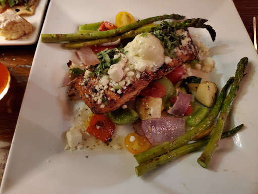 He got a decent sized piece of fish. The menu says it comes with roasted potatoes and roasted veggies. They looked steamed. He said there was no seasoning or flavor on anything. There was also no presentation. All these white foods came out on a white plate. It just looked so boring and unappetizing.