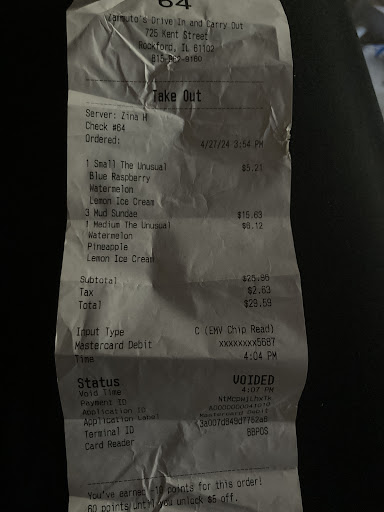 Don't go to Zammutos they have a kiosk machine that you have to order on now. Can’t give a person your order for the ice cream. The kiosk machine does not work properly either. I used the kiosk machine had to first off figure out how to make a firecracker and how to change my order to remove one mud sundae for just chocolate ice cream in a cup with gummy worms. That’s when Zina H came out to help with that part but kept insisting that I should use my card at the kiosk machine instead of just paying it at the front window. Anyways I paid at the kiosk with my card I signed it and asked for print receipt and nothing printed out for the order I made of $29.03 for the ice cream. My kids were upset I was upset we waited in line just to order on a kiosk machine that doesn’t work properly. Then to get help from a Zamuttos employee. Then the server Zina H going to tell me she don’t see that order of the 29.03 from the kiosk and wanted to charge me again for it. I was thankfully smart to tell her to cancel that partial payment of the 11.66 because they already took 29.03. She kept saying no they didn’t, but as of today that 29.03 has posted on my bank statement but yet I did get the refund for the 11.66 the same day Zina H refunded back to my card for trying to charge me double like I didn’t pay the first time from the kiosk machine. I also noticed that Zina H was going off the old receipt order that didn’t have the change in ice cream that she helped remove and add just the chocolate ice cream in a cup with gummy worms. The 11.66 refund was on the old receipt not the new one that was made that she changed in the kiosk system that I got charged 29.03. I was right Zina H was trying to charge me for the old receipt of 29.59 with the three mud sundae’s 1 small unusual and one medium unusual before the new change she helped me made on the kiosk with only two mud sundaes and one unusual, one granita and one chocolate ice cream in a cup with worms that came out to 29.03 without tip. I just want my money back on ice cream I never got for my kids and I of the 29.03!!
