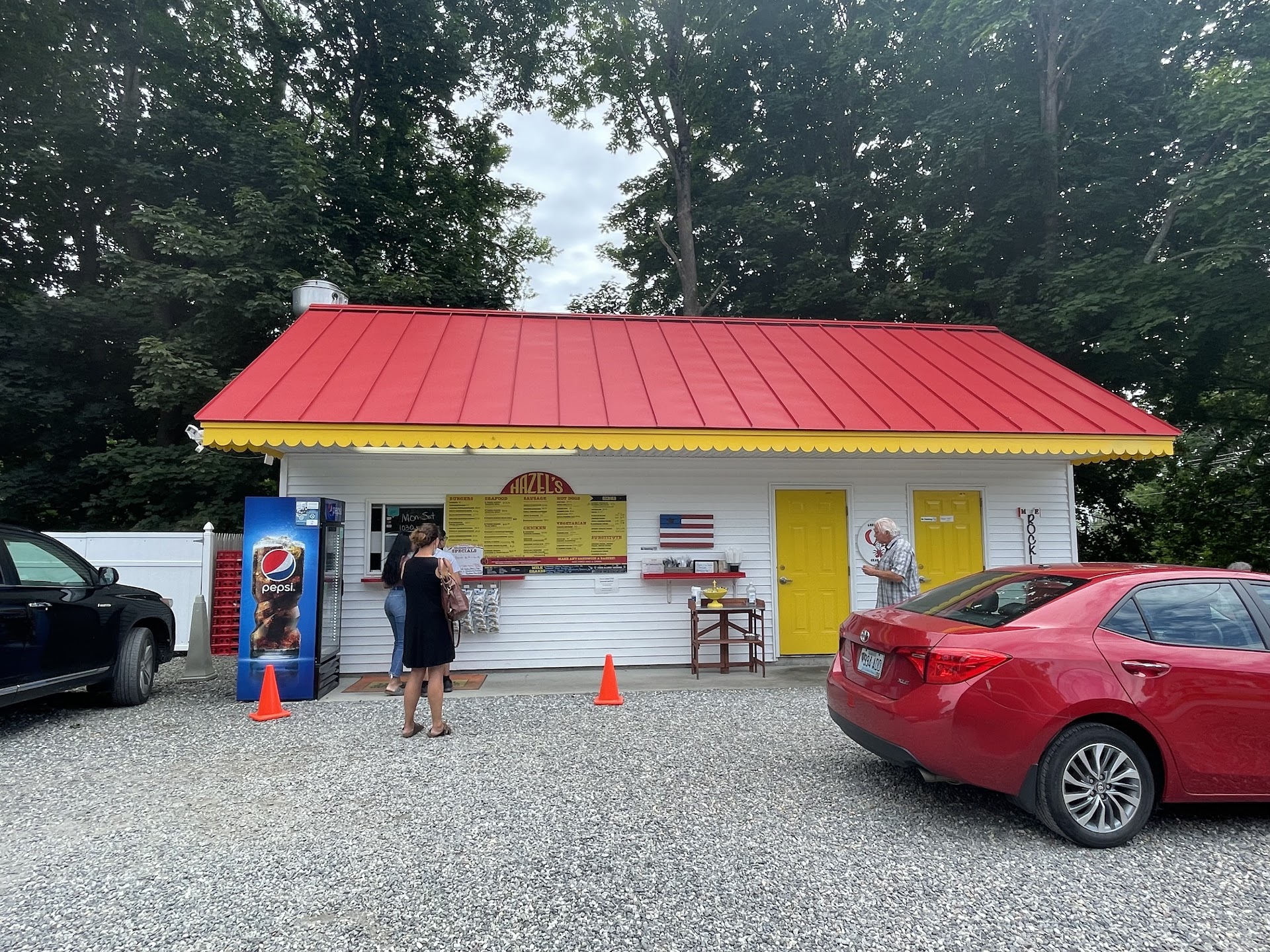 Read moreGreat roadside burger stand! You've got your usual burgers, hot dogs, fries and onion rings. But they have some fancy items on they menu too so that your vegetarian friends can have a sandwich too. I've been twice and never disappointed. The burger was choice, cooked to order, and the fries battered and crispy the way I love! My first visit had a top class, fancy bun. Gotta say that on the second visit the bun obviously came out if the grocery store bread aisle. I'm giving five stars still, but I expect the sub par bun on my second visit was a fluke (stuff happens you know?). I'll update this review next year! All in all Hazel's is a top class, summer roadside burger stand with great serving sizes, good materials, and...