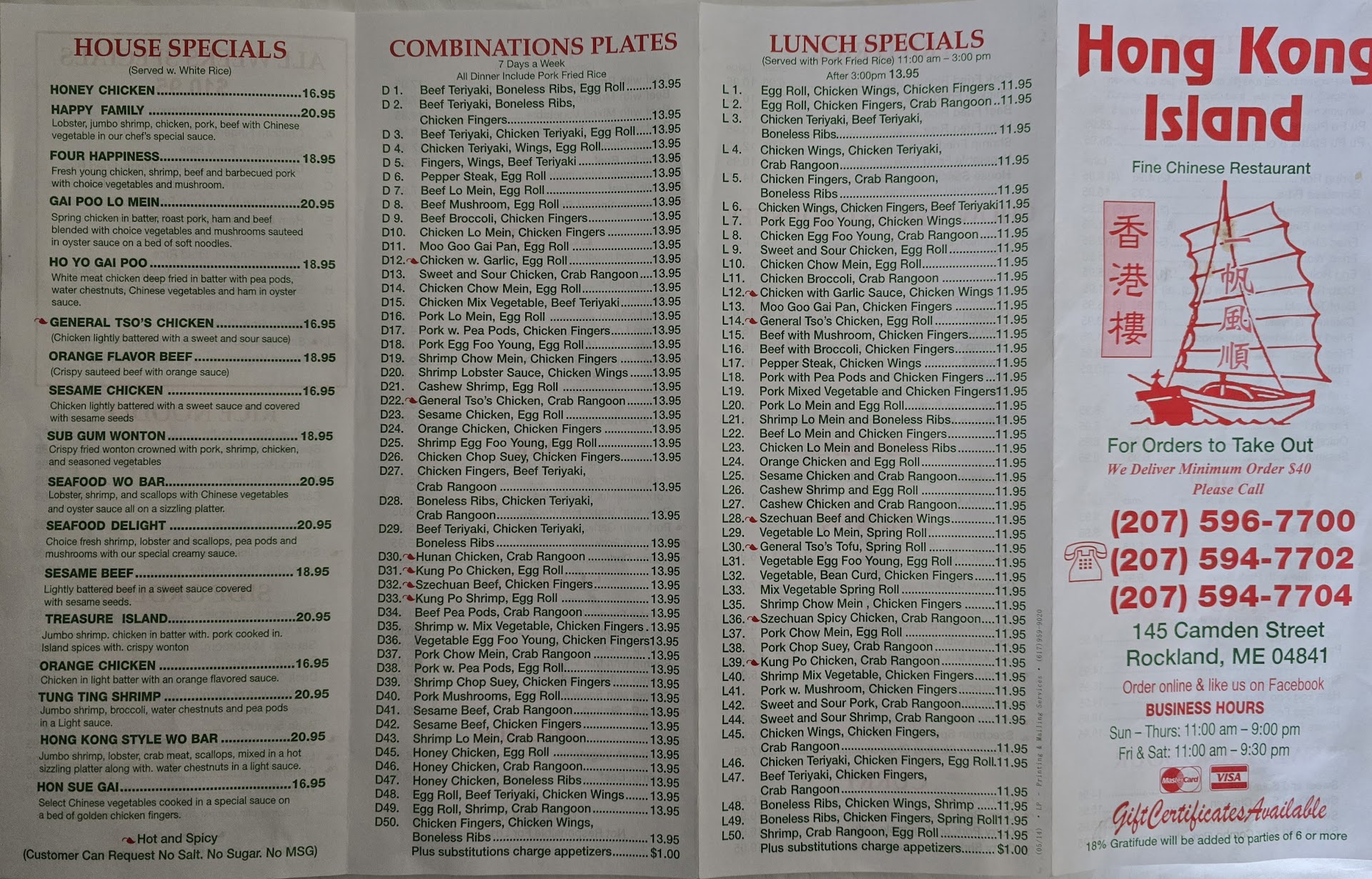 The chicken Szechuan had what tasted like leftover, over cooked, (not steamed), broccoli. As there is more broccoli than anything in the dish, it wasn't pleasant and thoughts of how old the food was entered my head, so I didn't eat it. It was about $14.95 for the single carton menu item. Spice was good in both dishes; my husband rated the chow ok, but lots missing on the mein.