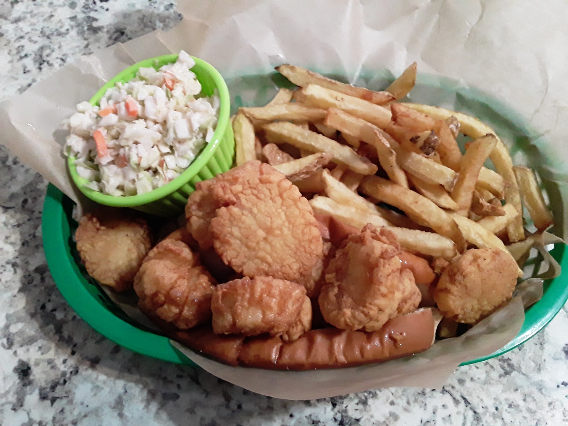 Cute hideaway cafe on a busy street! The food was OK as the fried scallops were kind of greasy and after eating 6 or so, I was done with my sandwich. My husband had a crab sandwich and was indifferent about it, and wanted to try a different crab sandwich from another location for comparison and was much happier with the second option. I dont like leaving poor reviews but I have to be honest that it was OK. The staff were wonderful and attentive and overall it was a good experience.