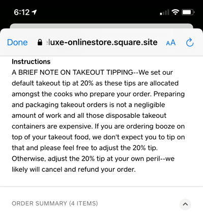 I had left out other details on purpose, trying to keep it simple, but the gloves are off. We had a 645pm rez but showed up at 630pm, and were seating quickly (the only thing that happened quickly during our visit). After fumbling around with the QR code menu on our phones, we ordered drinks. When they arrived, one of them was not what we ordered, and the Negroni was meh even though it’s generally hard to screw up. We drank them anyway.