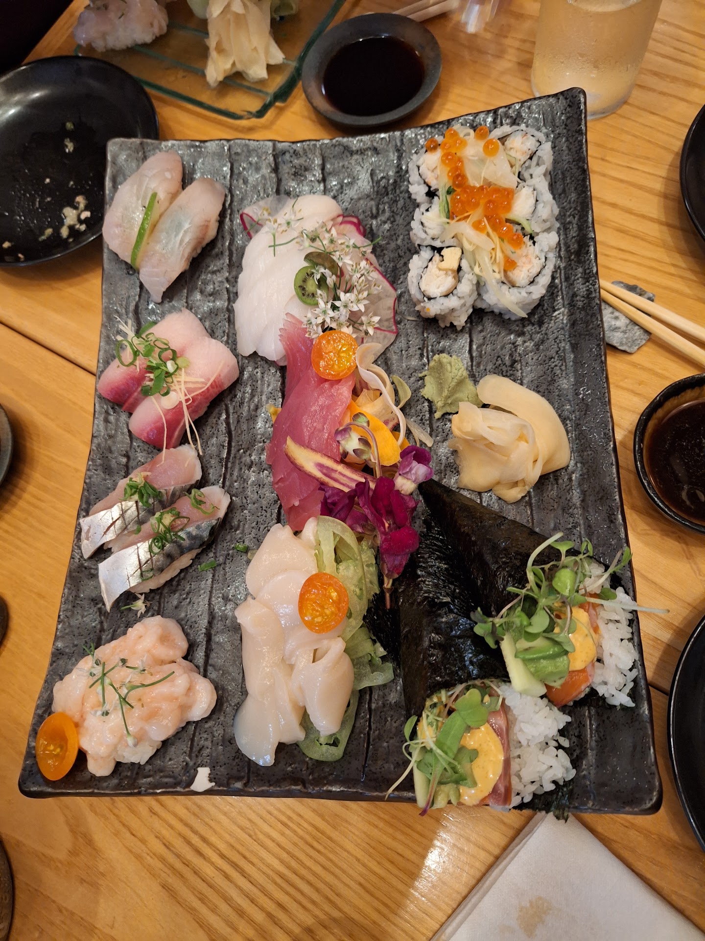 The fish was crazy fresh, the rice was perfect, and the other fillings complimented the fish without overpowering it. The garnish was beautiful and delicious.