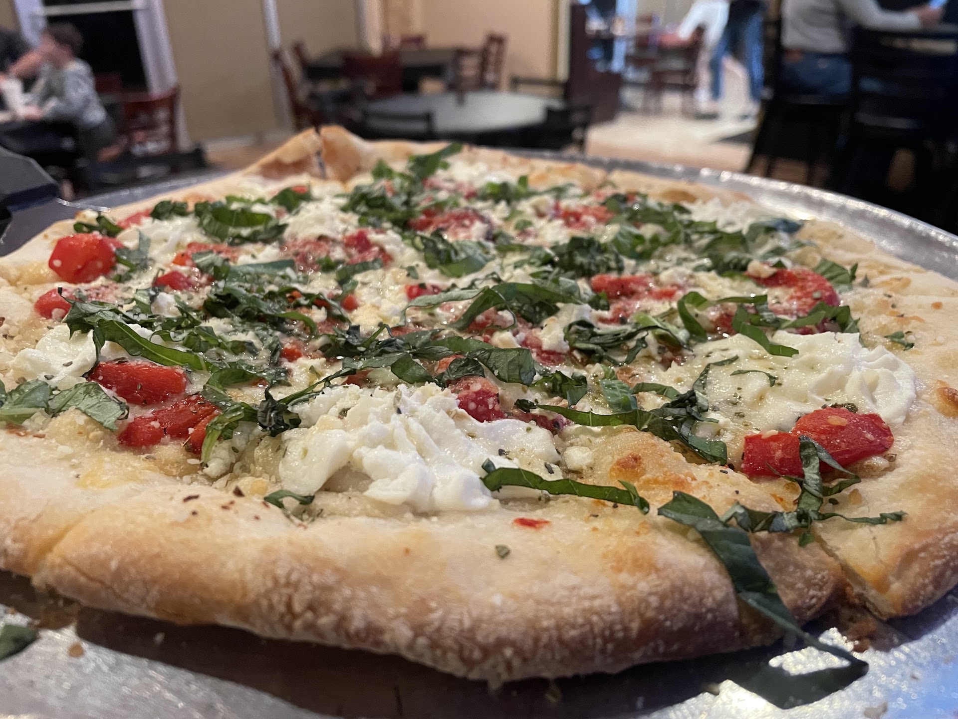 I ordered a 12” margherita pizza, my mom ordered a 12” roasted feta pizza, and we split a side caesar salad.