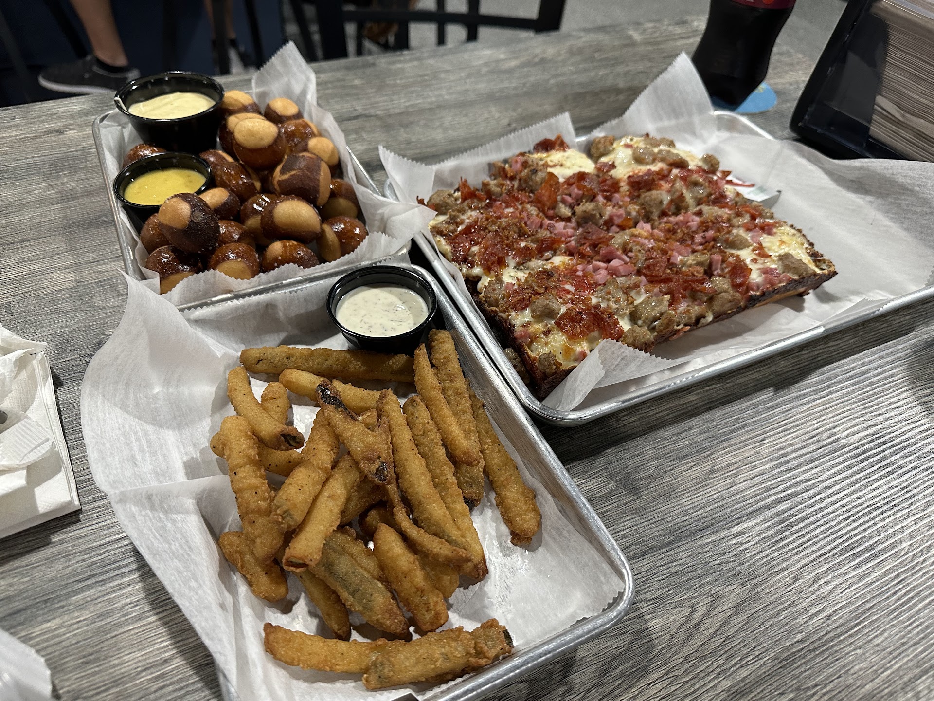 Recommendation: The Detroit Pepperoni pizza, a Classic Smash Burger (hold the condiments), and a few...