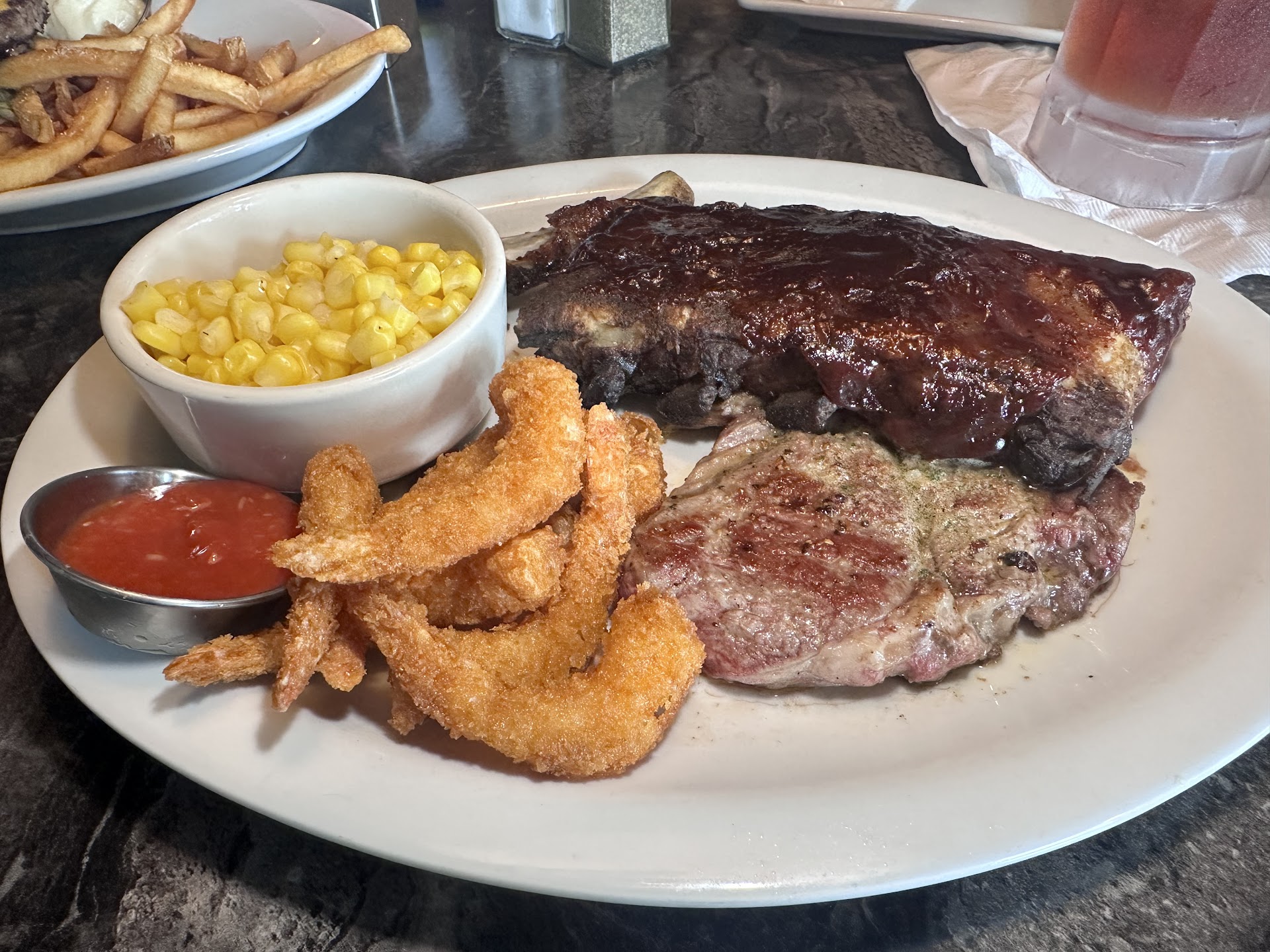 The crab dip was served warm with tortilla chips. Good amount of the chips, no need to ask for more to finish. App came out more promptly that expected, yet another pleasant surprise. Oh, I always am a wine order, here basic house red long pour. Loved that is was poured, and an actual correct pour! I know my counts on site, being in the business longer than I would have liked to be. So nothing sets a bad tone for the experience, than a pour being short, n I have to literally say something about it not being such which never leads to a simple admission n apology & repour. No, always a long drawn out manager called stupidly drawn out experience ending in my being correct when measured, and my eating experience wasted as I only want t o go after all that wasted energy. So explains why the correct pour made me happy, thought I should include. Companion had a soft drink. Directly after app was finished and well timed our entrees came out! So nice to have the flow continue as it did from kitchen to table, rarely happens but on the occasion it extends? Just love the experience and honestly makes the entirety all that much better!