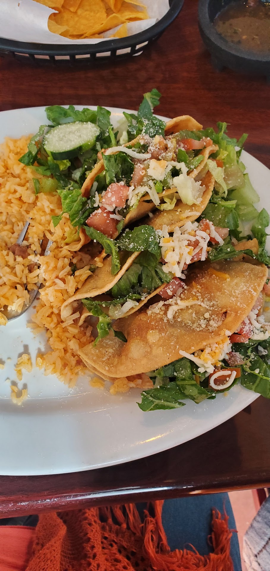 I placed an order of enchiladas, tamales, rice, beans, and salsa for 10-12 people today. The woman (Amanda I think) that answered the phone was very friendly. She went above and beyond to make sure they were able to fulfill my order and have it ready in time (a few hours later). I arrived at the restaurant at the specified time and they were finishing up the order. Amanda said I could back up to the front of restaurant and she would load the car. I was a little nervous about getting enchilada sauce in the trunk but the foil containers and lids kept everything secure. Not a drop in the trunk! I was very pleased with all of the food. Everything tasted very fresh, enchiladas had plenty of meat, cheese, and red sauce. Rice was fluffy and flavorful; beans were also tasty. The chips and salsa were very fresh. Added bonus: Amanda provided a mild salsa along with the spicier one in case someone wanted mild. Nice touch! I am so thankful that El Mariachi was able to help me out today. The food was delicious, filling, and made for a stress-free dinner. Looking forward to leftovers tomorrow! I will not hesitate to call El Mariachi in the future. Thank you again for excellent food...