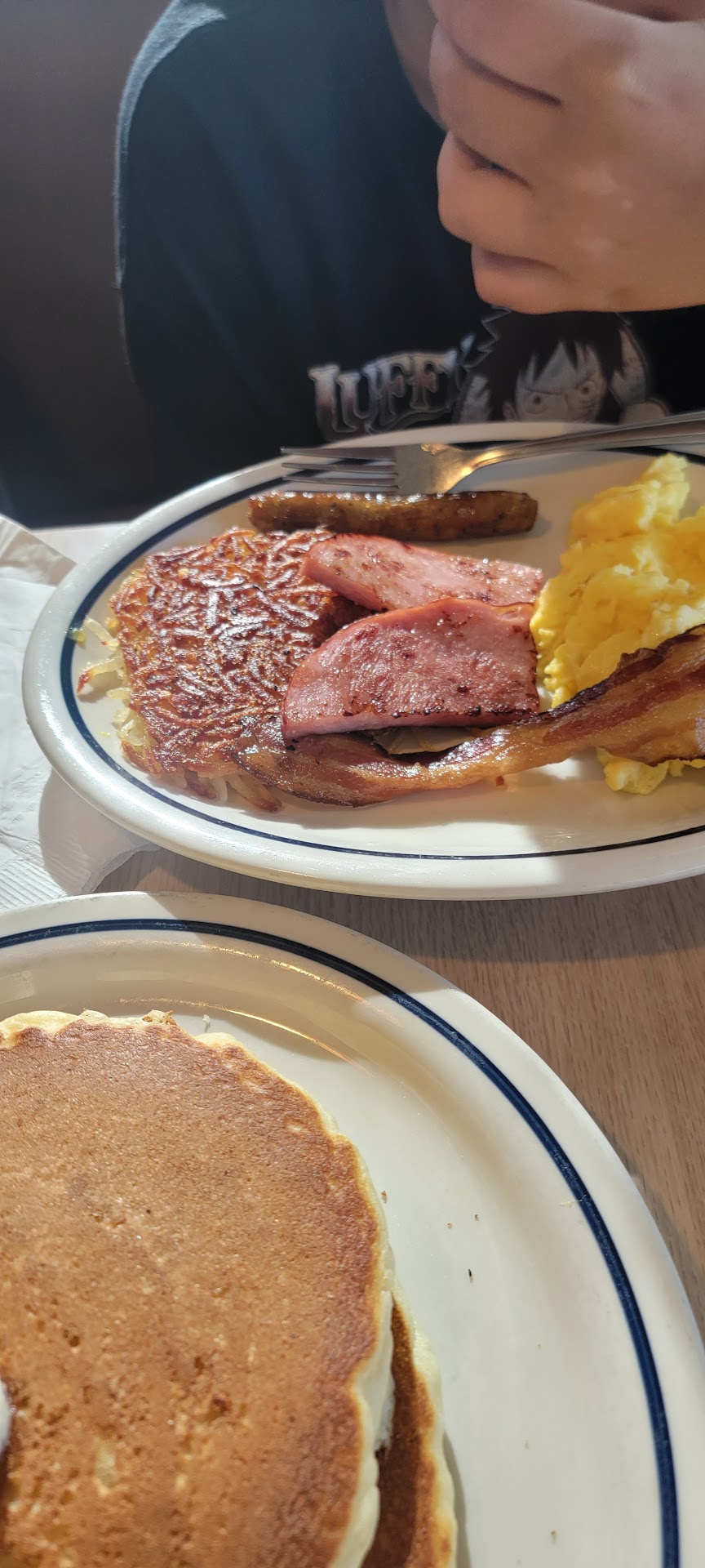 Read moreIHOP provided the food and level of service I would expect from a franchise breakfast diner. Food was delivered fast, service was friendly but somewhat limited due to the number of patrons in the restaurant.one of the biggest downsides of restaurants like this is the limited number of healthy options. Most of their breakfast entrees are around a thousand calories or more. I chose one of the few omelet selections that were a healthy choice and while it was decent it did not have a lot of flavor. my son's choice of the cinnastack was very tasty but extremely sweet. It was like having dessert for breakfast.unless you go with one of their breakfast specials prices are a bit more than I thought they would be for very basic breakfast food. It was very similar to what I would expect at a...