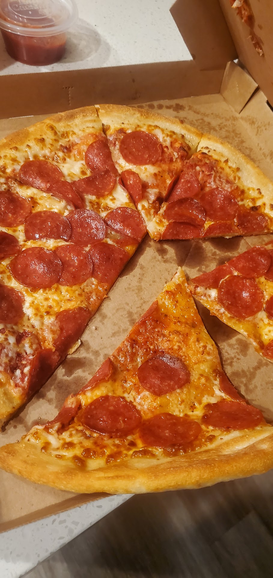 Read moreOrder few hours before my pick up time on the app. At my estimated pick up time my order was not even in the oven. That is when I first time ordered. So, I gave them another chance. Next time I got the order but the person that was working there was very rude ans snappy. When I wanted just to check my pizza before I left the building he wouldsay not to open it. Sure enough when I already left the building and opened my pizza , I got the worst pizza I have ever had. It was burned and dry. Attached picture, see for yourself. I would not go to this place ever again. I recommend another location for a customer even if it takes longer to drive. This people don't deserve your business. Some maybe lucky to get pizza there, but I sat even the first time it was not that good. I made my decision to never go there again but shop elsewhere. Hope it...