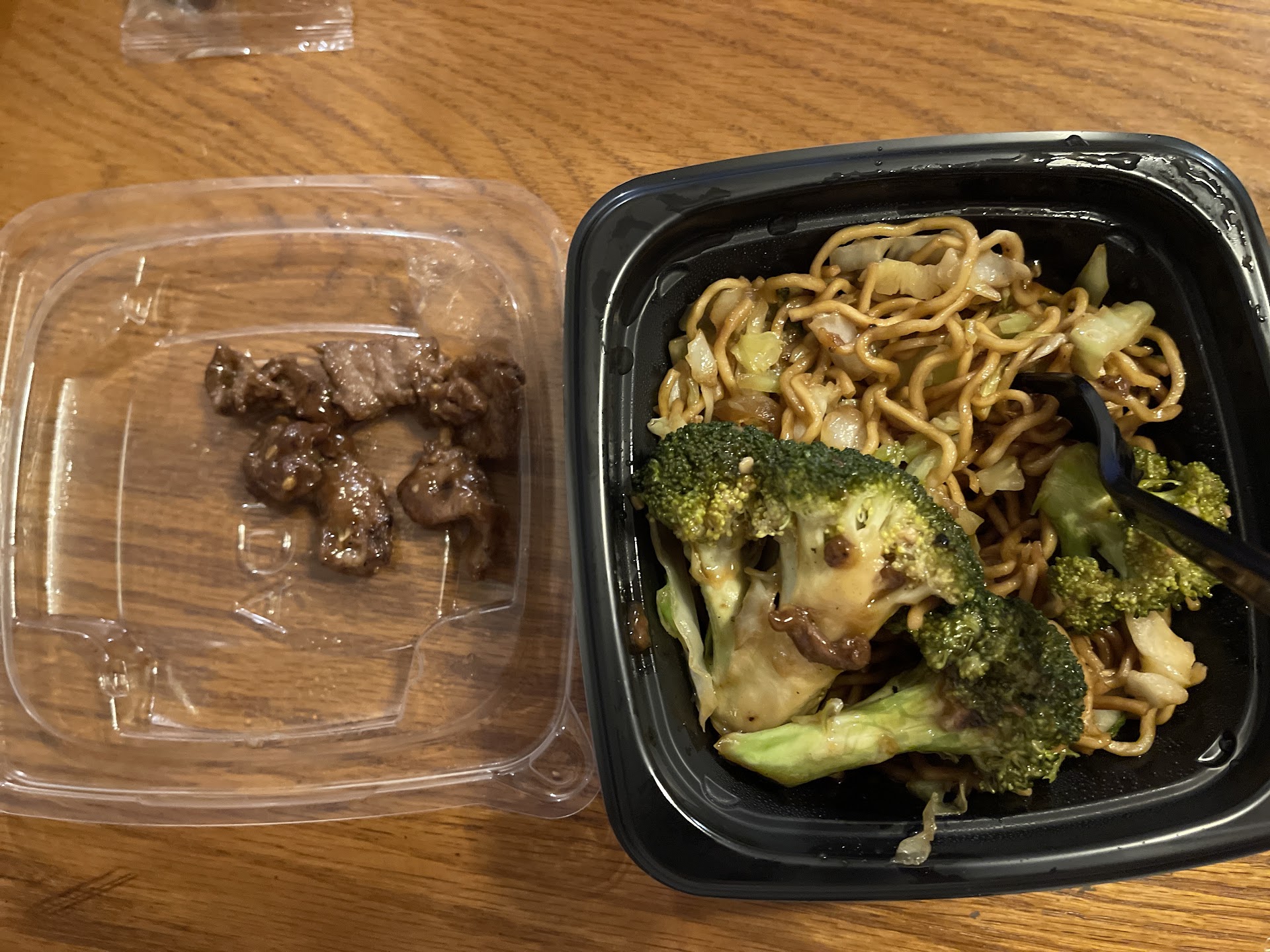 The reason I didn't give it only 1 or 2 stars is because the food was decent. The quality is still pretty consistent with panda quality as far as the Brocolli Beef and the Beijing Beef are concerned. The fried rice was still decent, but the chow mein was full of cabbage and onions and barely any noodles. The orange chicken was burnt, dry and the portion was miniscule. There was five...