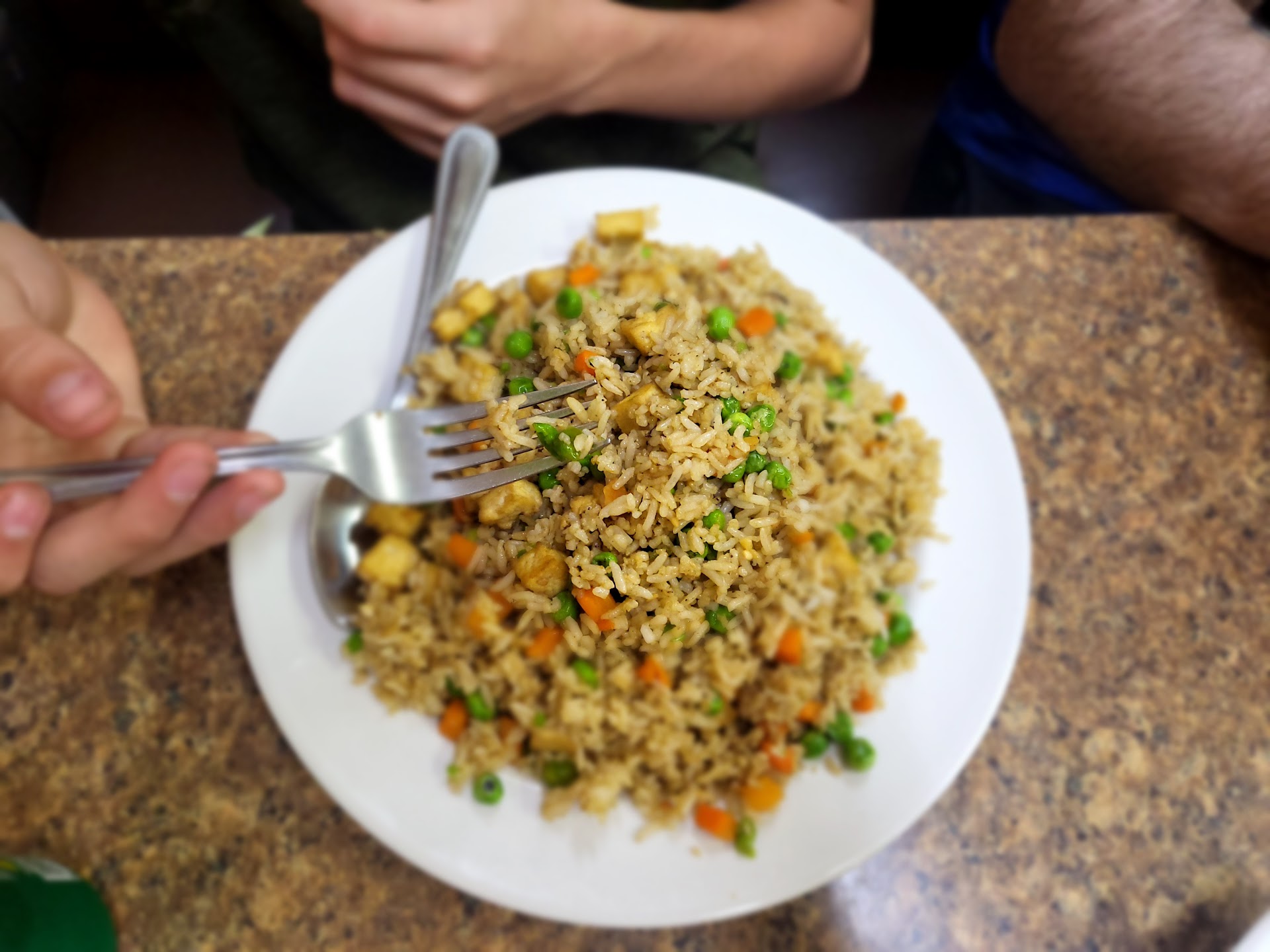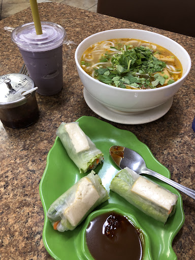 We had the Filipino pancit, orange chicken, lemon grass tofu, and fried rice. The orange chicken veggie meat was rubbery & stale & sauce wasn’t orange in color or in taste. The bell peppers and onion it was made with was barely cooked. Tastes like veggies and veggie meat was warmed in microwave & then doused with sauce. Lemon grass tofu was drowned with what tasted like the same sauce as “orange chicken” There was no lemongrass taste in the dish. Same deal with the veggies as in the orange chicken. Pancit was mostly onions with a sprinkle of thin noodles. It was not Filipino pancit in taste or texture. The fried rice was barely covered with/soy sauce. It was mostly white rather than the dark brown color you’re used to seeing with fried rice. One good thing I have to say about this place is that the service was very friendly which is not common in Asian restaurants (in my experience) Good customer service not...