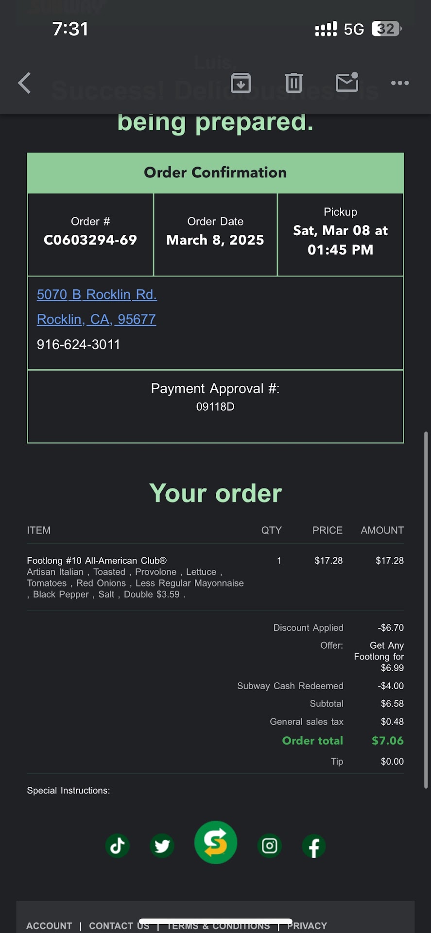 This is the only Subway I will ever go to, and for one reason: Bobby! I was not only impressed by the delicious sandwiches they offer but also by the OUTSTANDING customer service provided by him. From the moment I walked in, Bobby greeted me with a warm smile and went above and beyond to ensure I had a fantastic experience. His friendly demeanor and GENUINE happiness in serving customers TRULY stood out. Bobby's dedication to making my visit memorable is a testament to the EXCEPTIONAL service that this Subway store consistently delivers. Like I said this will be the ONLY Subway I will ever go to for my meatball sub, specifically because of him and his positivity! Thanks to Bobby and the entire team for making my meal an enjoyable one after I passed the MSF course! He is truly such a positive person 😁 I very much hope the owners of this franchise read this review and recognize they have an amazing person working for them. Also, the shade is a definite plus for parking my Harley in 🌲🌳 (I didn't quite catch his name tag, so apologies to him if I spelled Bobby /...