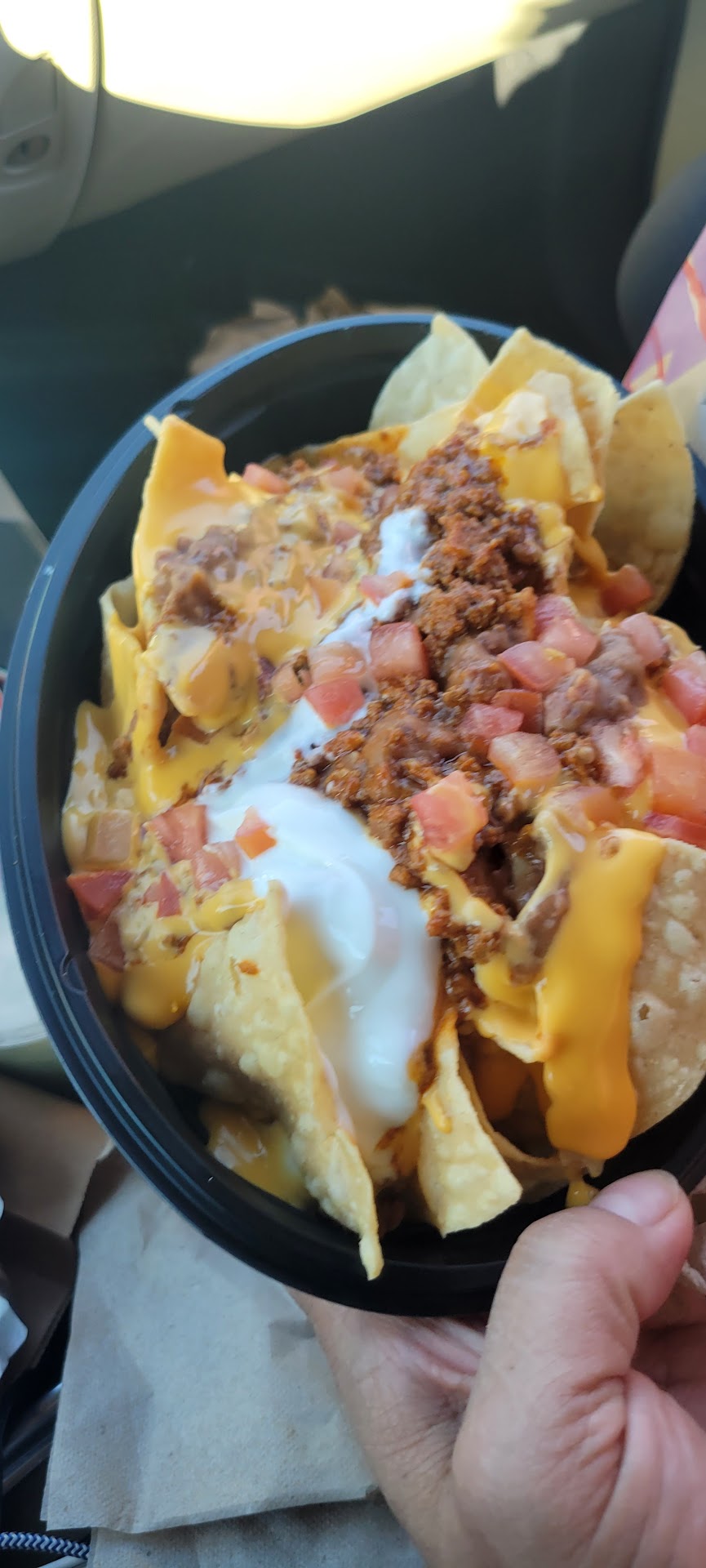 I ordered on the app...paid for extra beef on my crunch wrap supreme. There is not extra beef on here (I've been to locations who actually fill out their crunchwrap supremes better than this!!! I've also worked Taco Bell many years ago. I don't think their portion scoops have changed and if they have than this is a crazy for "extra" beef!!) I ordered a large nacho fries with the nacho cheese sauce. It did NOT come with it. I ordered one of the lux boxes on their app and did chips and cheese as well. So not only did I not get extra beef but my crunchwrap was was paper thin...almost no sauce in it and thinly spread meat, missing a sauce. And most of my food was cold. We live down the street. It's a quick drive over (less than 1 minutes). We ordered ahead to make it easier. I've had mistakes at this location before. I'm getting to the point that I don't want to bother eating at this...