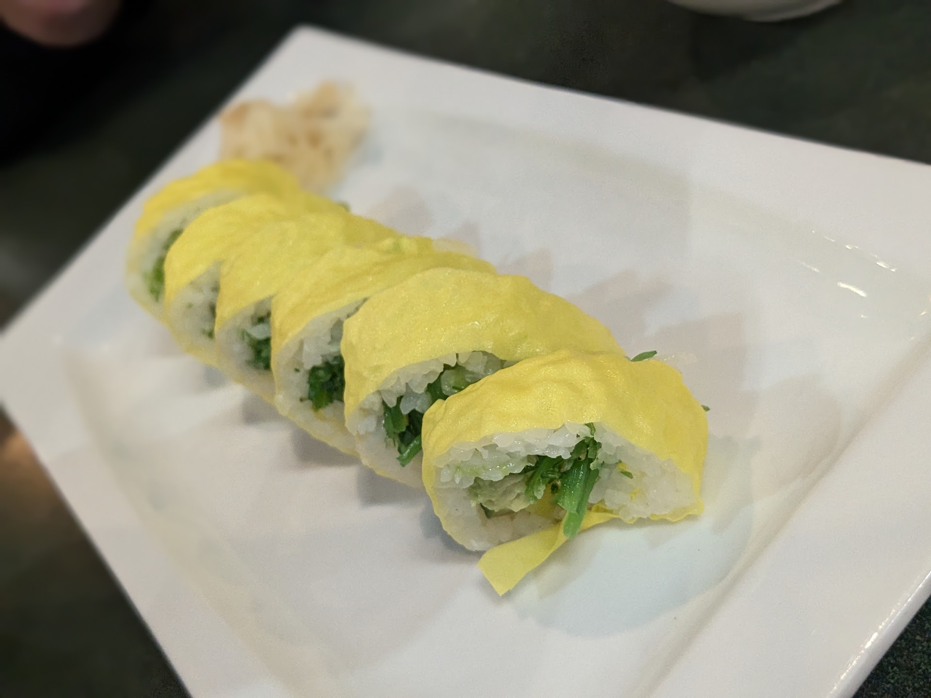We had a Mt. Fugi roll, a Hole in One roll and a third I can't recall and they all were awesome. Me personally, the Mt Fugi roll was my favorite. Also tried the Hamachi Kama (it's fish cheak and though it may sound weird, it's not, try it)... I've had it elsewhere and had to try it here and it didn't disappoint. Order it upon arrival, as it takes a minute to prepare... My lady friend also had a bowl of Miso soup, which she said was good.