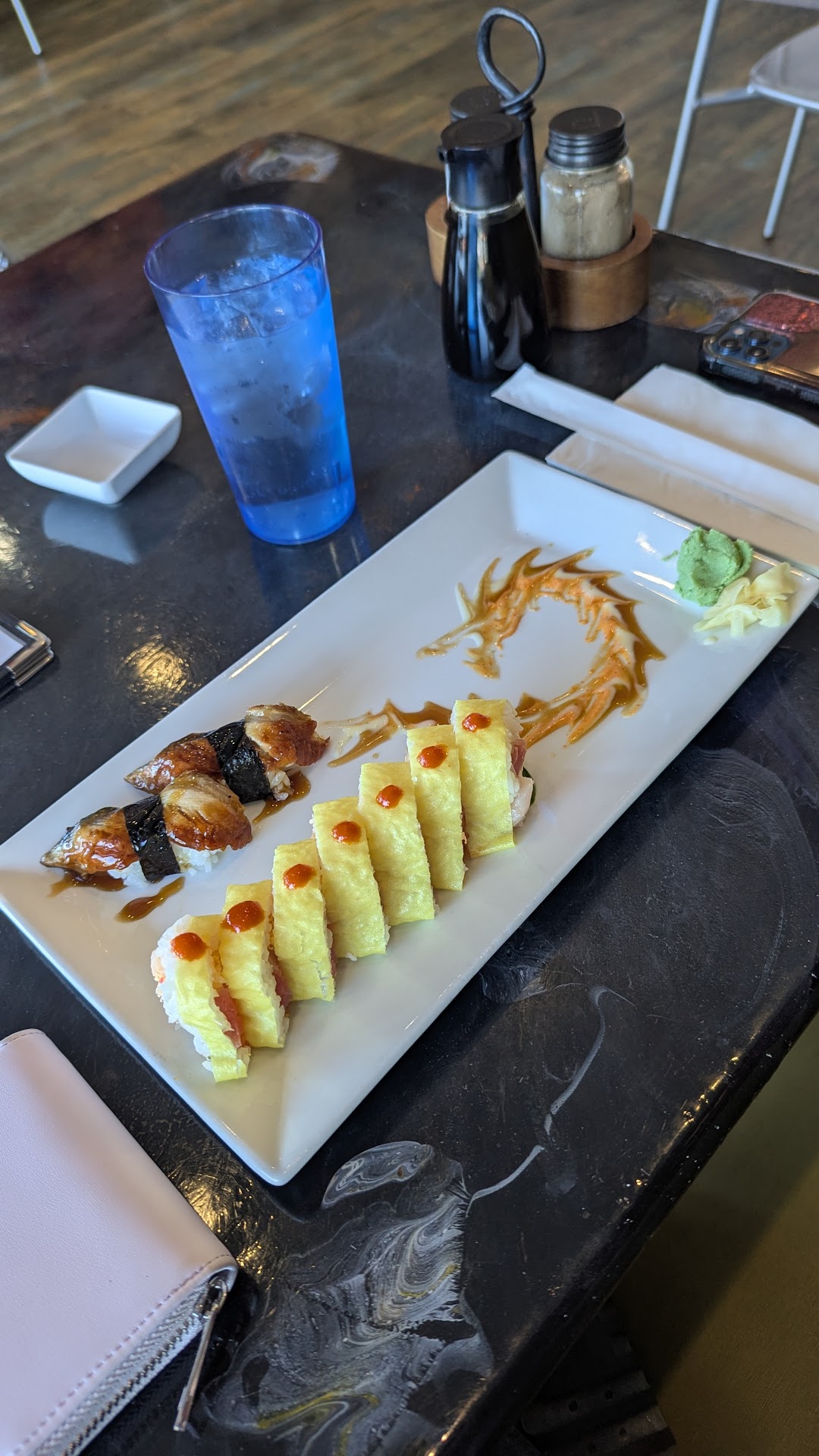 Read moreHere’s what $60 of flavorless fish scraps looks like. Right is 12 piece sashimi, HALF of which was salmon. Spongy flavorless tuna, a handfull of salmon trimmings piled up, and some terrible hamachi that looks like it was pulled out of a package pre-cut for nigiri. Total Rip off.. left is bbq albacore which was overcooked and dry, swimming in some juice. Not even grocery store quality, but mukini prices. First time was the last time. I couldn’t finish it, so $20 of the $60 is in the trash. Asked for extra wasabi and ginger, nope. Thank goodness I had soy sauce at home because they...