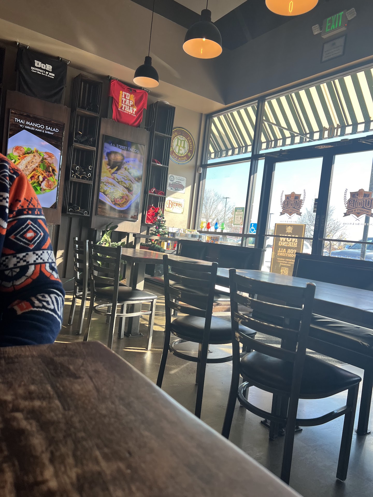Read moreCustomer service is DEAD at UOB thanks to Andrew and his poor service! Today at around 2 pm in the pouring rain my 4 yr old grandaughter and I entered the the UOB Lonetree location. We were greeted by a young man named Andrew. He immediately pointed at a table for 2 in front of the door and next to a group of 4 guys (what 4 guys wants to sit next to grandma and a 4 yr old while throwing back a few beers?). I asked if we could please not be next to the draft of the door...he replied "NO you have to sit there at a table for 2". I looked around at the 6 other open tables in plain site and NOT in front of the draft, or near a group of 4 guys....and again asked could we sit over there (pointing to a 4 top) he said "NO that table is for a group of 4 that might come in". I then pointed to 4 other tables that were pushed together and away from the draft of the blowing wind of the front door...Can we sit there? He said NO you can only sit over there and pointed to the DRAFTY table foe 2 in front of the door. I looked at him in disbelief and replied "that's OK we will go eat somewhere else in the center that's considerate and wants our business" and left.