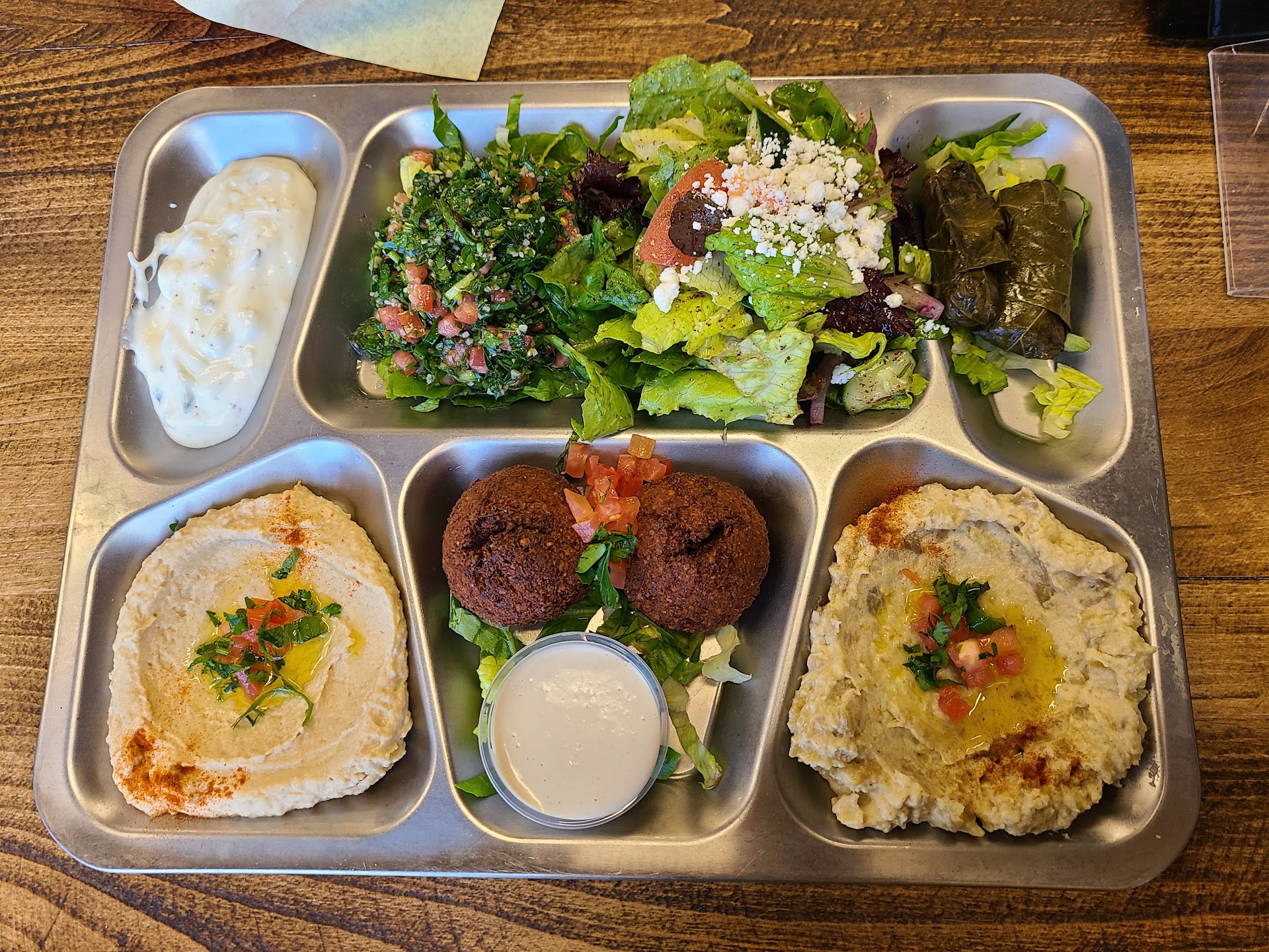 Read moreMy company ordered Wally's for a lunch meeting, and no one had anything good to say about it. -Gyro meat tastes like some bland factory made stuff that came in a bag and was microwaved, it wasn't the savory spicy stuff that is commonly expected from a mediterranean place. The pieces were all little pre-formed cuts and not the traditional greasy delicious shavings that most greek places have. -chicken "shawarma" was likewise flavorless and seemed like something you would buy at Costco and then regret. It looks like its been seasoned, but just tastes like nothing. -the hummus was acidic and bitter tasting like it was expired. -the salad was low quality restaurant supply greens with a handful of chopped tomatoes, half a handful of red onion, and a small side cup of feta cheese. -tzatziki sauce was like watery plain yogurt with no distinct flavors. -the only thing that had any flavor was a container of straight up pureed garlic, I guess to just smear on everything else once you realize there's no seasoning -the dry old low quality "pita" tortillas (it was too thin and flat to call it bread) was delivered in the store-bought bags they came in. They didn't even pretend to toast them and put them in a foil container. -the rice...had bits of carrot mixed in to give it the illusion of being seasoned. How do you screw up rice? -the baklava was some dry old store bought stuff also, so dry and mostly made of peanuts it crumbled to pieces just picking it up. Tasted like dusty stale granola.