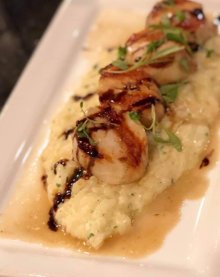 Read moreWe were interested in trying a new restaurant while on vacation in Rockport since our usual had a 2 hour walk up wait. Called for reservations and hostess took our number and called us back about 30m later. She put us on hold, after returning our call, for about 5 minutes. Weird? She told us she had space for party of 5 at 5pm. OK, we'll take it! Got there and we weren't sure it was open. Walked in and, due to COVID social distancing, it looked like the restaurant was half opened. Boxes of inventory along the wall, tables and chairs stacked upon one another in the corner. Pictures that should be on the wall were laying against the wall. Not impressed at first glance. For intro, we ordered calamari and crab dip. Calamari was strange, not your usual fried rings. It was more like planks of grilled calamari, like grilled octopus in Greece. It was ok, but wife liked it. Crab dip was great, would order it again, but accompanying chips were a mix of old stale and crisp new. Wife ordered chicken piccata, which was typical, nothing special. I ordered scallops, which was very very good, with risotto. Perfect balance of taste and texture. Kids ordered typical kid menu stuff, again, nothing extraordinary. Cheesecake for dessert was also good. Overall, we would return, but need to explore the menu more before full...
