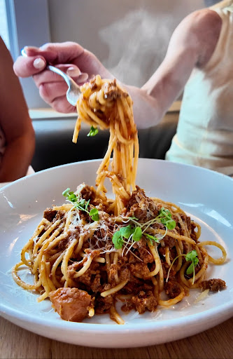 After she was done negotiating her service, we were allowed to check in and we were given what was perhaps the worst table in the restaurant. It was next to the entrance, and the bar, and the cash register and the wait station. Honestly, in my humble opinion, there shouldn't be a table there. When we asked for another table the hostess, who was very young, spoke to a person who we later learned was one of the owners. He quite brusquely told her they "if they don't like they can eat outside". I told the young lady "never mind, we'll go somewhere else." She looked at the owner who made a hand gesture that suggested 'let them go, who cares.'