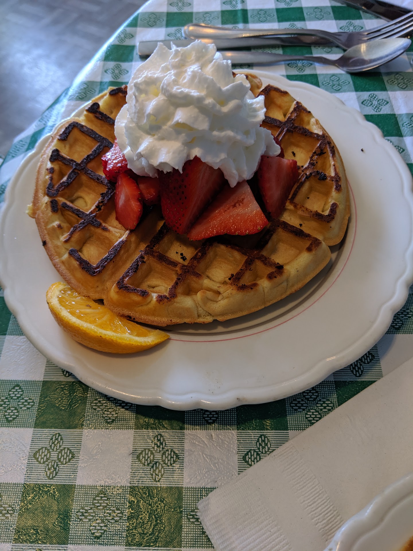 I considered walking the 10 minutes back to advise the restaurant of the error, but the signs posted inside the restaurant, as mentioned above, made me feel like that might be a worthless endeavor. I used my fingers to eat the two eggs and half English muffin. As I pondered my Karma and cursed the universe for my luck, I walked back to the b&b I was staying at and had some granola and yogurt.