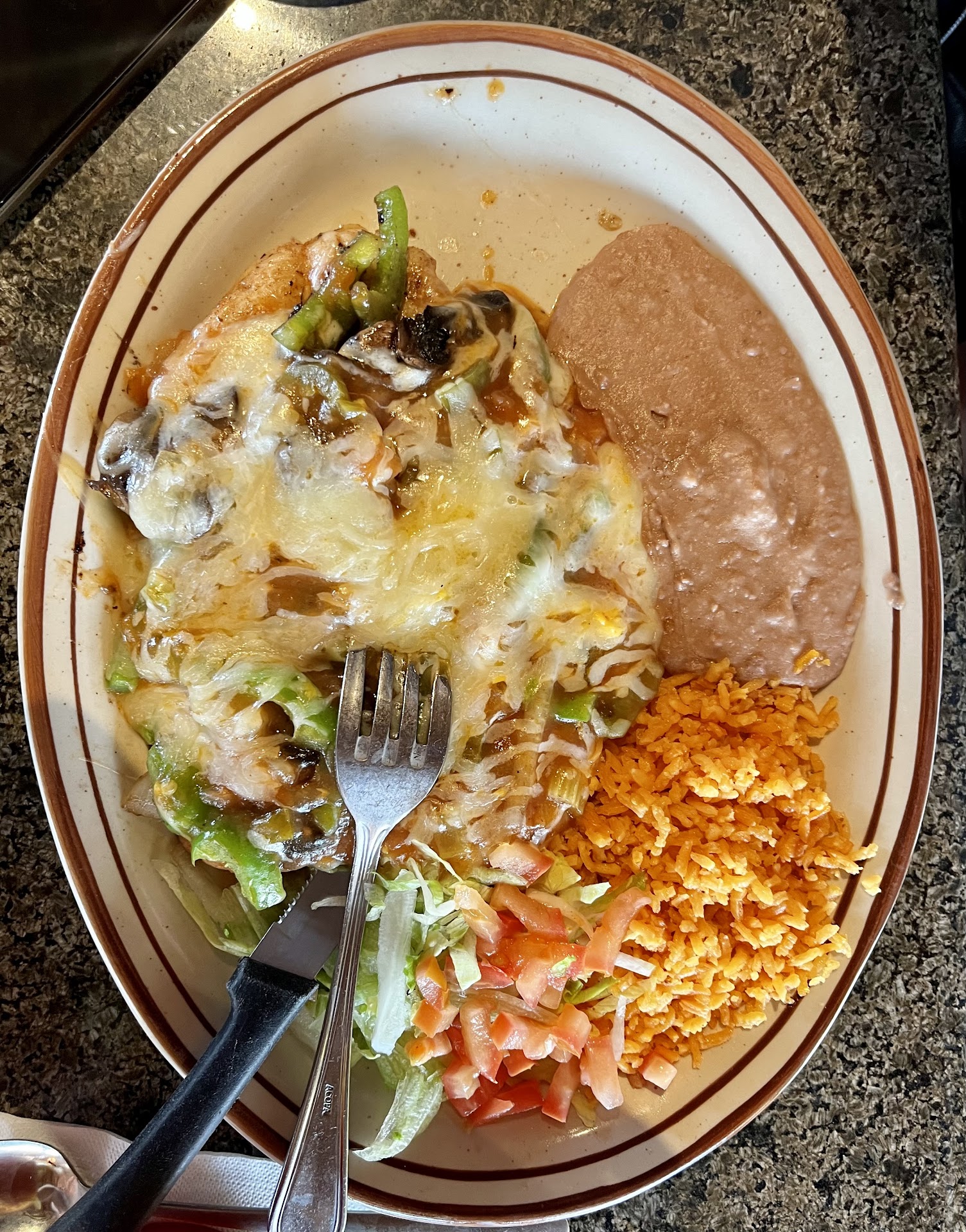 Read moreThe view has improved, but the quality of the food has fallen here since the relocation. A couple of years ago this was my "go to" spot for Mexican food, but since the move to Rockport from Fulton they seem to be catering more to the tourists and the quality and uniqueness of the food has suffered. There's an 8 page menu, but everything has been blanded down for the Yankee pallet. If you're a tex-mex aficionado, as I am, you'll be bored. With rice that has no resemblance to Spanish rice... no tomato, no peppers, no paprika, and just no flavor, and tamales with a thick layer of maza, and a small amount of unseasoned pork...well, I had a hard time finding something I liked. I will say that the tamales were moist and well cooked. Also the sauce and queso mix was brought out to me in a bowl, which I prefer because then I can get as much or little as I like, but it was thinner than it should have been. I missed the tortillas on the table as this used to come with every meal, just like in Mexico, but not any more apparently. Aside from the food I found the experience pleasant enough. We had our drink, and food orders taken pretty quickly after seating ourselves, but I had to go find the waitress for a go box. Also, our server dropped off the bill and disappeared without offering dessert. I object to this anytime there's cheesecake on the menu ;) The dining room is large with big booths to accommodate larger groups and a party room. There's a decent view of the beach across the ski basin from the dining area. It was clean, well lighted and well staffed. I find it odd that the Asian style etched glass from the Chinese restaurant that was in the building before, was still there but it wasn't TOO distracting. They have a range of table sizes available with hand made yucca fibre base chairs that HAD to come from Mexico. There is good accessibility for the disabled here... parking, ramps by door, wide aisles and bathroom access, but the bathroom was untidy (see pics) and I cab see the sink being a challenge is your chair bound. Aranda's, your newer building is looking great, especially since the storm repairs. Can we get the food back on track now?! Or are you content to be a tourist trap with no...