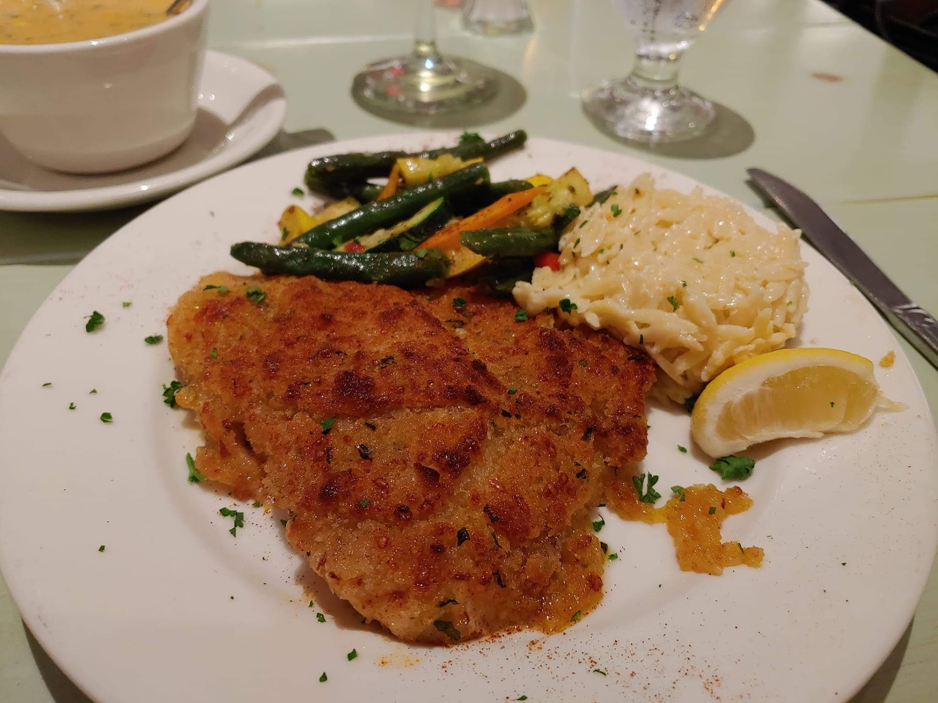 Read moreWe wanted a fine dining experience in Rockport and internet research showed this restaurant seemed to fit the bill. I'm not sure if reservations are required, but we made reservations for 6pm on a Saturday. The drinks I got from the bar were excellent! A couple Woodford Reserve Old-fashioneds did the trick. I was disappointed in the side dishes on the menu. Almost all of the dinner entrees are served with the same sides; an orzo pasta and sautéed vegetables. Keep in mind, when I had my dinner, I enjoyed them, but I was surprised & disappointed in the lack of options. I ordered the stuffed shrimp and thought it was quite good. The salad with house vinaigrette was great! My wife is more of a steak lover, so she ordered the only beef option, the Steak Diane. This is supposed to be two 4-ounce beef tenderloin medallions. The "beef tenderloin" was surprisingly tough, as this should be the most tender cut of beef. It even had some sinew in it, which lead me to believe it may not have been beef tenderloin, or maybe just a bad cut. Either way, it was not of the quality we expected. The desserts were excellent. We had the key lime tart and the creme brulee, which was prepared tableside! I would rate 4.5 if I could. I just wish more sides were available and the beef wasn't of...