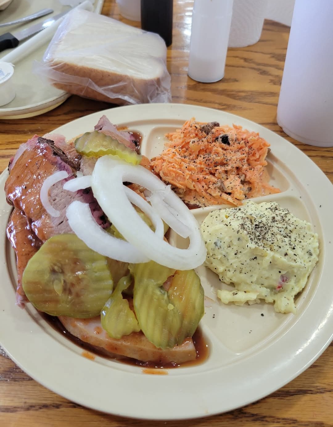 Read moreActually, the rating should be 2 1/2 stars. The sides are good and there is a fairly plentiful number to choose from, the sausage is just okay, think Bill Millers and chicken is tender and moist. But the brisket, oh that brisket. When they pull it out, all shiny and glistening and you see the juices running as they slice it, the color looks a little light but not a deal breaker. Then when you sit down and take a bite, the dream shatters. No flavor in the beef. No spices, no salt, no smoke. Tender enough but just bland. How is this possible? I will admit that I do like their three meat po' boy (sliced brisket, chopped brisket and sliced sausage). If in concept more than execution. I prefer my brisket with an almost black crust. This can affect those with a more mild digestive system. The age range of Rockport skews more towards the senior crowd. This might be why they seem to dial back on the spice and smoke so as not to offend them and why my dad likes. Me, not so much.