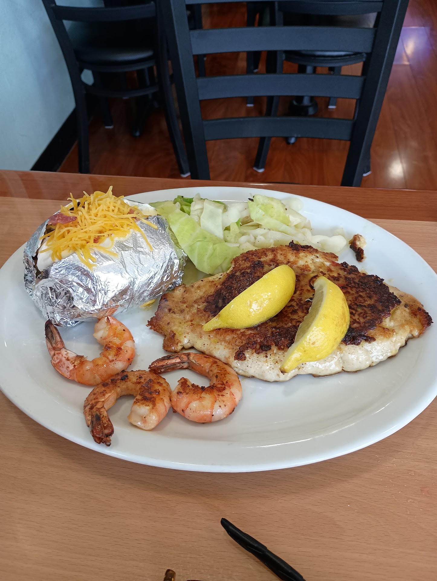 Ā Ā Ā Read moreWe were desperate for a moderately-priced seafood restaurant, and our search yielded Nemo's. We were impressed with their options for fried and grilled seafood [and crawdad], and I was excited about the steamed cabbage as a side dish. The baked potato was tender and loaded without any extra charge, but my wife carried hers out whole because the stuffed snapper was so generously portioned. The only finding pertained to the condition of the snapper: it was unduly dry and mealy because of its state of preparation. The stuffing was cooked thoroughly and likely accounted for the state of the fish. That miss was forgiven, though, because of the delightful flavor and texture of the grilled shrimp. These shrimps represented a pleasant surprise with a savory seasoning and slightly fibrous chew that seemed more substantial than the amorphous modulus that fried or boiled shrimp can provide. Lest I fall to praise the crawdad tails, I will laud the quantity and the tender texture and appealing breading that added definition to the sweet flesh. We do not envision a soon return to the area, but any successive journey will likely include an additional...