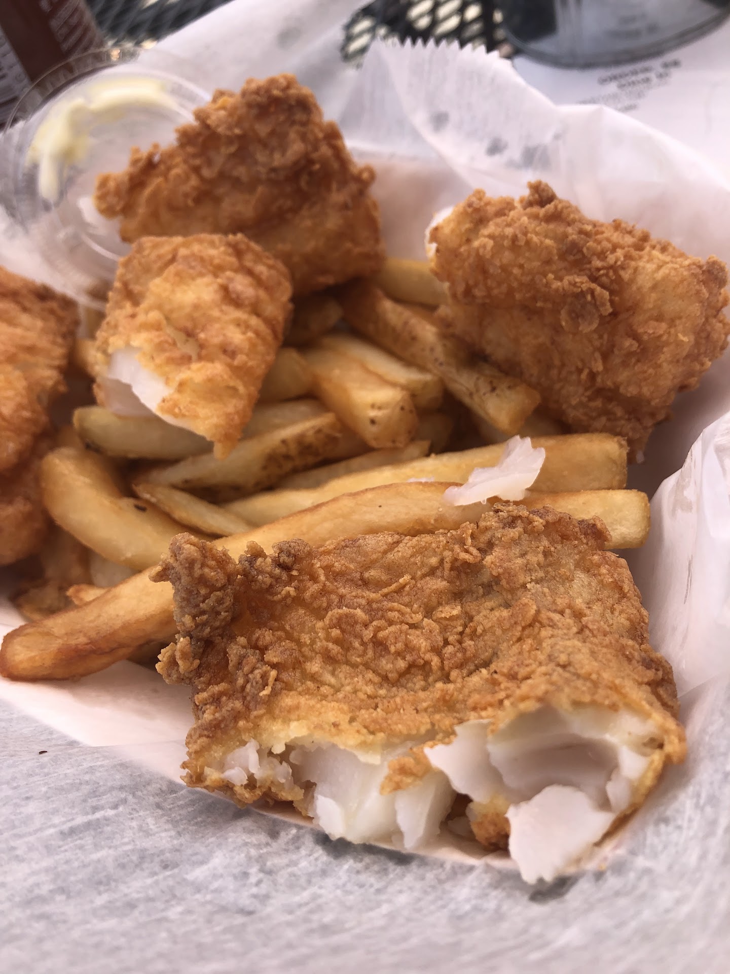 Secondly, the food is great. The fries really are "the best in town" as advertised - perfectly crispy on the outside and tender inside, and nicely seasoned. The crab roll was generous, fresh, and lovely. Onion rings were not overly battered and also fried to perfection. The fish and chips were also fried just right and the fish was flaky and clearly fresh. I can be critical of some tartar sauce, but the one that came with the fish was top tier. They know what they're doing. The lemonade is definitely homemade and is very good as well - perfect on a hot summer day