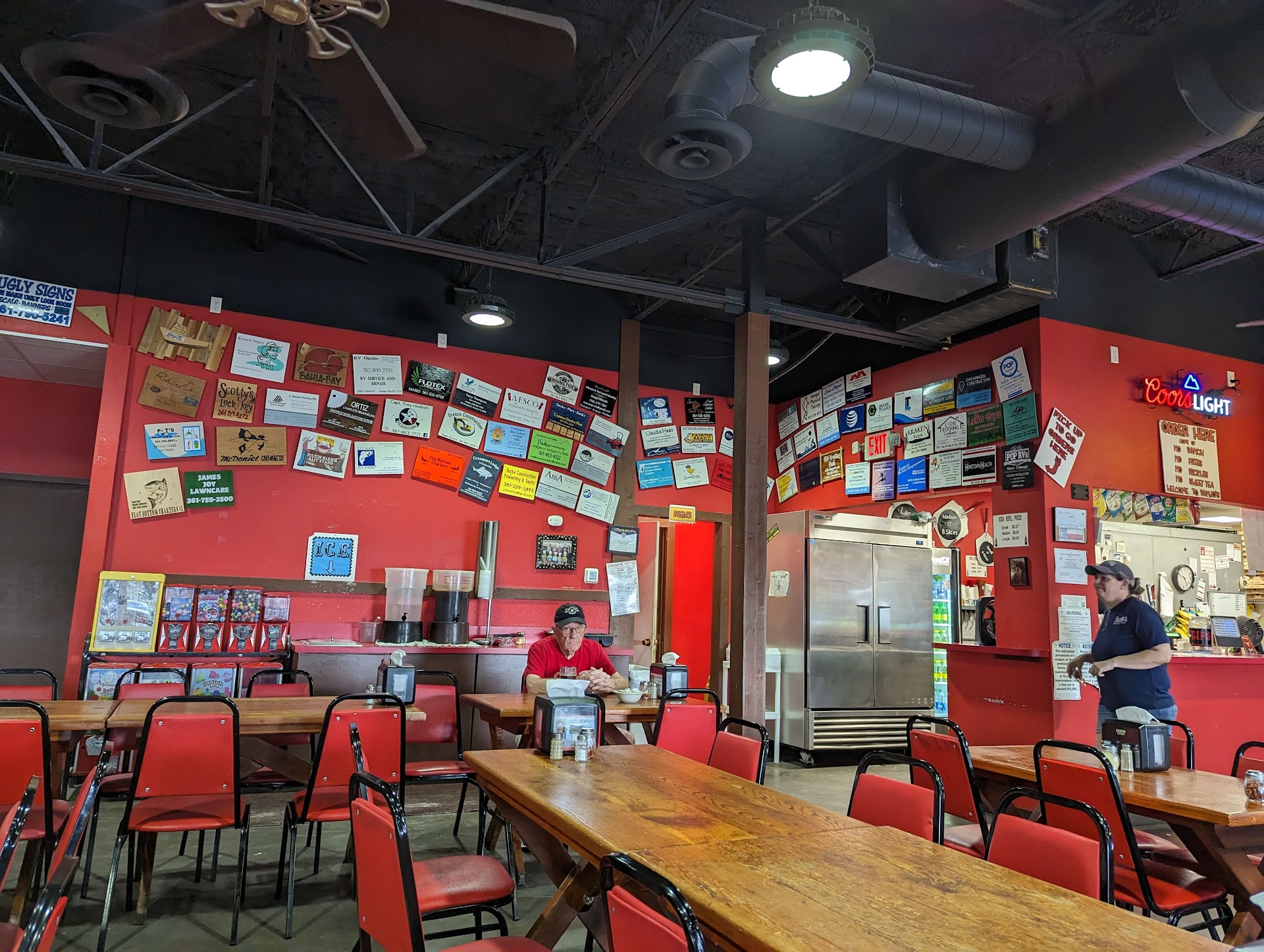 Read moreThis is my first time eating here, so I have no idea what to expect. The menu seems fairly straight forward with pizza, burgers, and some pasta items. We ordered a pizza, medium-size, and asked for half-and-half on the toppings. One half was salami and Italian sausage. The other half was mushrooms and black olives. We ordered a pitcher of Diet Coke as well. Originally what I wanted was a turkey burger if it was on the menu, but it wasn't. We went with the pizza because the pastas just didn't strike our fancy at that moment. The pitcher and two accompanying mugs were frozen solid before being served to us. I really, really liked this idea. No ice to water down the flavor. The seating arrangements weren't too bad. We took a booth by the front windows and waited for our food to arrive. It was hot outside, but cool inside, so we enjoyed the nice A/C offered throughout the building. The seats and table are all solid wood, so not the most comfortable thing to sit on for more than an hour. The pizza came out and was very fresh and hot. However, what disappointed me was the crust was thin (I would have preferred a thicker hand-tossed crust), and the toppings were sparse. The cheese and sauce weren't anything special as well, but at least they had a good flavor. The three star rating is due to the lack of toppings overall and the crust just being too much like a burnt cracker. I paid almost $20 for this meal, $15 just for the pizza alone. It wasn't worth the price in my opinion. We might eat here again one day and try something else besides the pizza. So if you're ever in Rockport and in the mood for a homemade pizza, try this place. The beer is also served in those same frozen mugs....