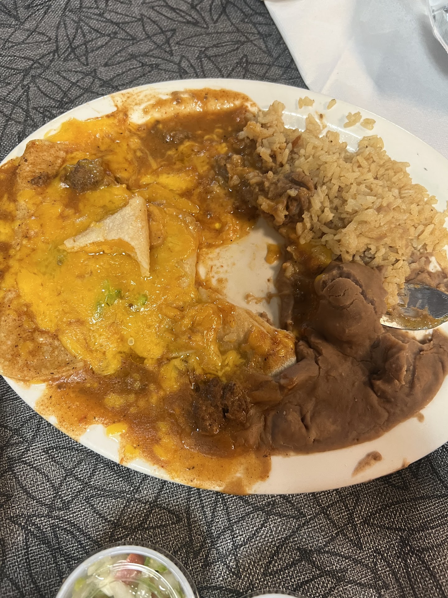 Read moreVery disappointed. My family and I who traveled from San Antonio, were highly recommended to go to this restaurant from local reviews. All the food that was ordered had no flavor and did not taste nor look authentic to Hispanic cuisine. The enchiladas were watery when the sauce is supposed to be at a thick gravy consistency, the rice and beans were dry and had no flavor, the "queso" simply tasted like velveeta, when we asked for cheese on the tacos they put a SLICE of cheese (not even shredded cheese), the barbacoa was caked in grease yet the meat was extremely dry, the carne guisada gravy tasted like cheap gravy with chunks of fat, the only thing you could taste in the carnitas was the onions on top, the eggs were severely over cooked, and they charged us for extra tacos we never ordered. The only good thing was the salsa and the chips. We would have liked to talk to management to possibly receive a refund , but they were busy with other customers and our disappointment was so high that we just left without even eating because only a few bites were enough to deter us. One may see it as spoiled but when you know what's good then you eat it, and when something is bad you leave it even if it's considered a...