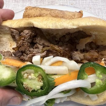 I ordered a steak Bahn Mi and asked for extra pickled vegetables and jalapeño. As you can see from the picture, the pickled vegetables were cut in an unusual way, in big chunks and it was very difficult to tell whether they had been pickled at all. The steak also was very bland. I'm used to Vietnamese sandwich shops generally having a good deal a flavor which I did not find with the sandwich I received. They didn't put the pate, pork roll etc. on my sandwich despite asking for everything. The bread, which, is made in house was very good.