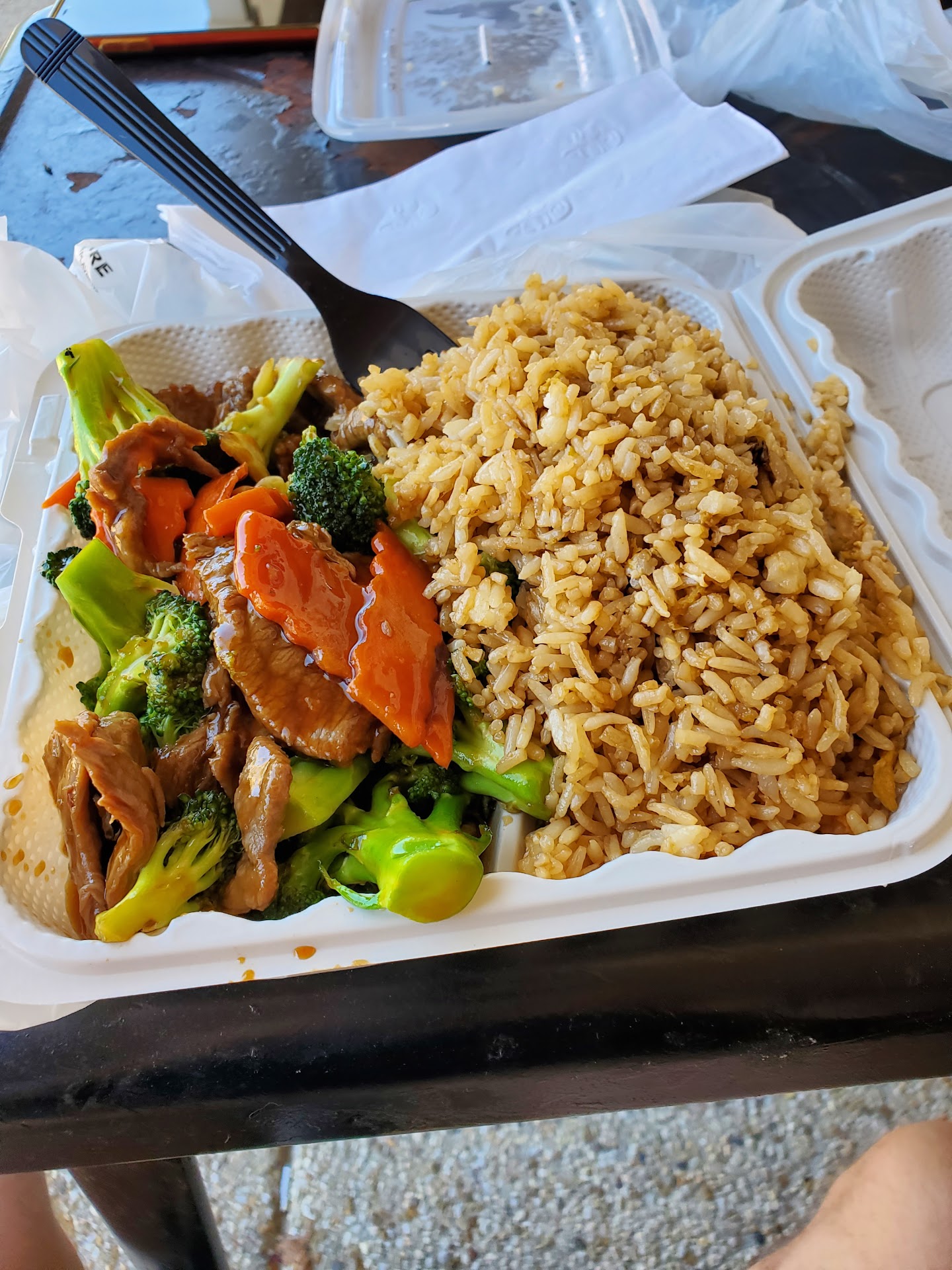 Read moreGood food, but not great. My wife and I ate here on a Thursday night. We decided to walk in to order since we saw it doing our weekly shopping. The inside is small so don't expect to eat inside, but around the corner there are a few outdoor seating areas. I ordered the Kung Pao chicken. It was good, but there were subtle hints of taste of remnants from the what I'm guessing were previous Chinese food orders. It tasted a bit like cornstarch and such which I guessing was left over from the tso or sesame chicken that were made in the wok. Don't get me wrong, it had a good taste, it was prepared well, but it wasn't great. My wife got the Thai chicken fried rice. It's taste was lacking. Again, it had subtle hints of taste from what we can only guess we're the last orders made with that cooking equipment. All in all, I would go back here, but only for lunch or if I had a coupon. I wouldn't pay full price for this...