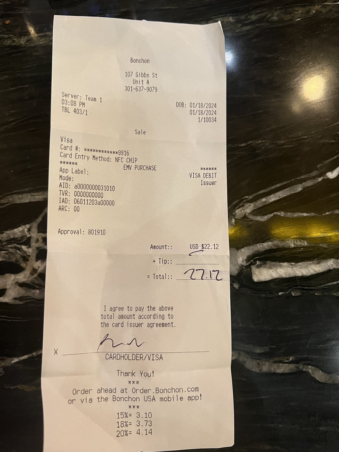 When I did get home to share my normally exciting Bonchon, we found they hadn't cared to open little vent holes in the box and put in the box super hot. For those who know, that means the chicken was super soggy by the time I got it home. Since Bonchon crust is supposed to be super crunchy, and I've had it many times from different Bonchons, i was very unsatisfied and left extremely disappointed in their Rockville location. I felt bad for the happy soul on the phone when the others that touched my order contributed to a terrible experience.