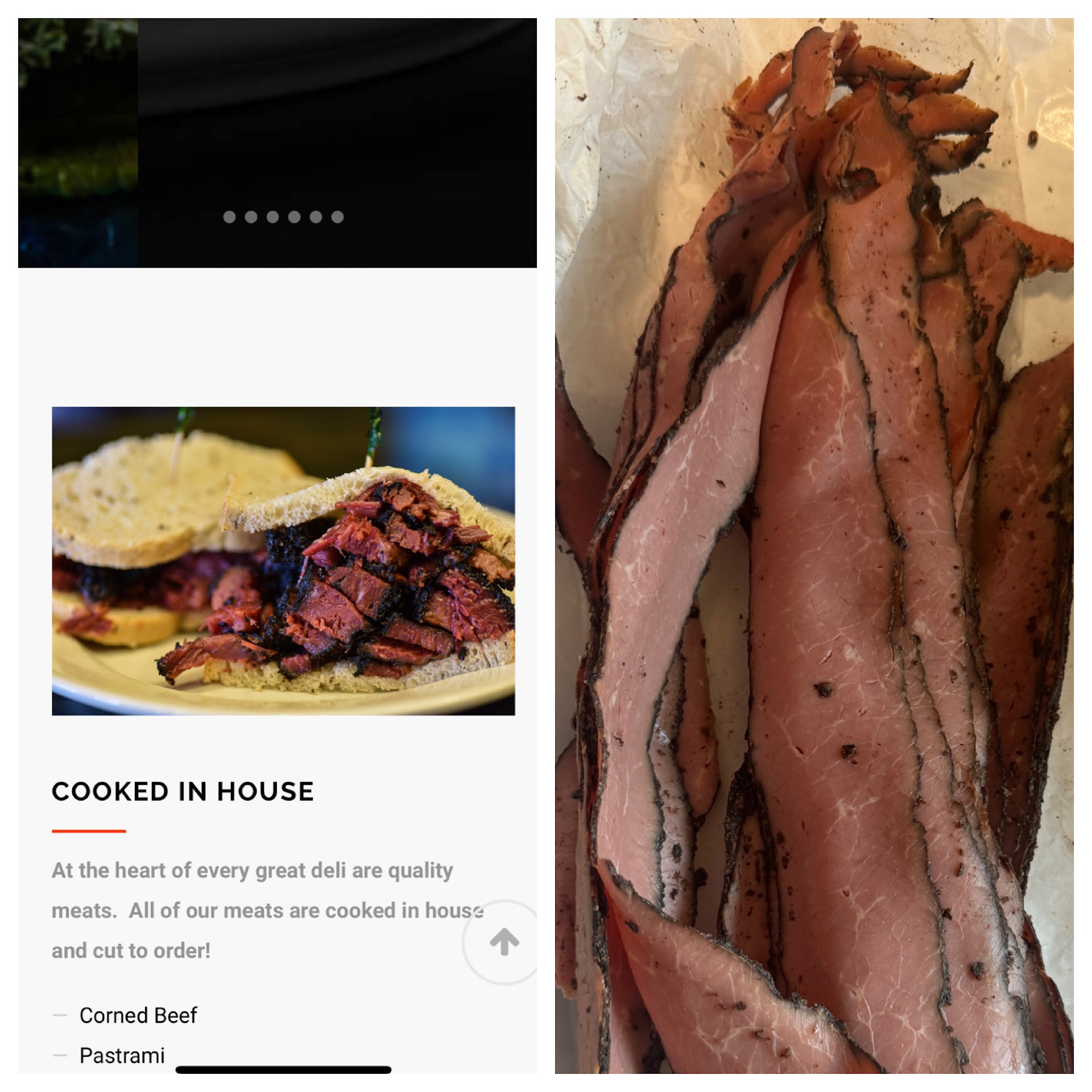 Average meal (on a Sunday night with very young staff behind the counter): Take-out pastrami sandwich had relatively little pastrami for the $14.00 price. Disappointing. No condiments (ketchup, salt) provided for the otherwise very good take-out French fries. Corned beef in the generously portioned Reuben was quite fatty. We hadn’t specifically ordered lean meat, but still... Suggest that patrons specify desired condiments and check their take-out for completeness before departing.