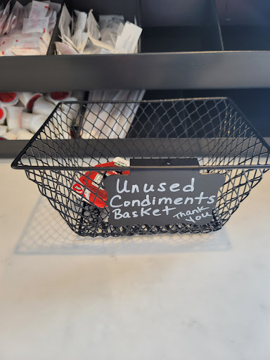 I ordered online and arranged to pick up in store. With online orders, you have to click a button indicating you are at the store before they charge your card and start preparing your order. It took about 10 minutes for my order to be ready, which I though reasonable considering how busy it was. A staff member greeted me when I entered and brought me my order after I gave my name. I had ordered two meals and they had put my two drinks in a sturdy cardboard carrier with a handle. I also found it interesting they had put my ordered sauces (ketchup, mayo, and mustard) in a small separate bag inside the bigger meal bag.