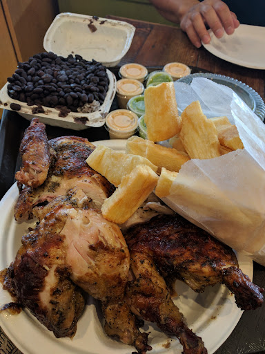 Read moreI didn't think much of the place from the outside. I ordered 1/4 dark chicken with 2 sides: rice and beans & fried yuca. It ran me about $7.50 which was very reasonable for the amount of food. Also, they came with 2 sauce: mild and spicy. You can request one over the other if you have a preference. If you want extra sauce, you have to pay $.35 for small and $1.35 For large. Decorations and dining areas seems to be lacking. The place always playing loud Spanish music, which is super annoying when you also try to listen for your food order. Oh yea, did I mention they are calling out the food order in Spanish. It took me a while to...