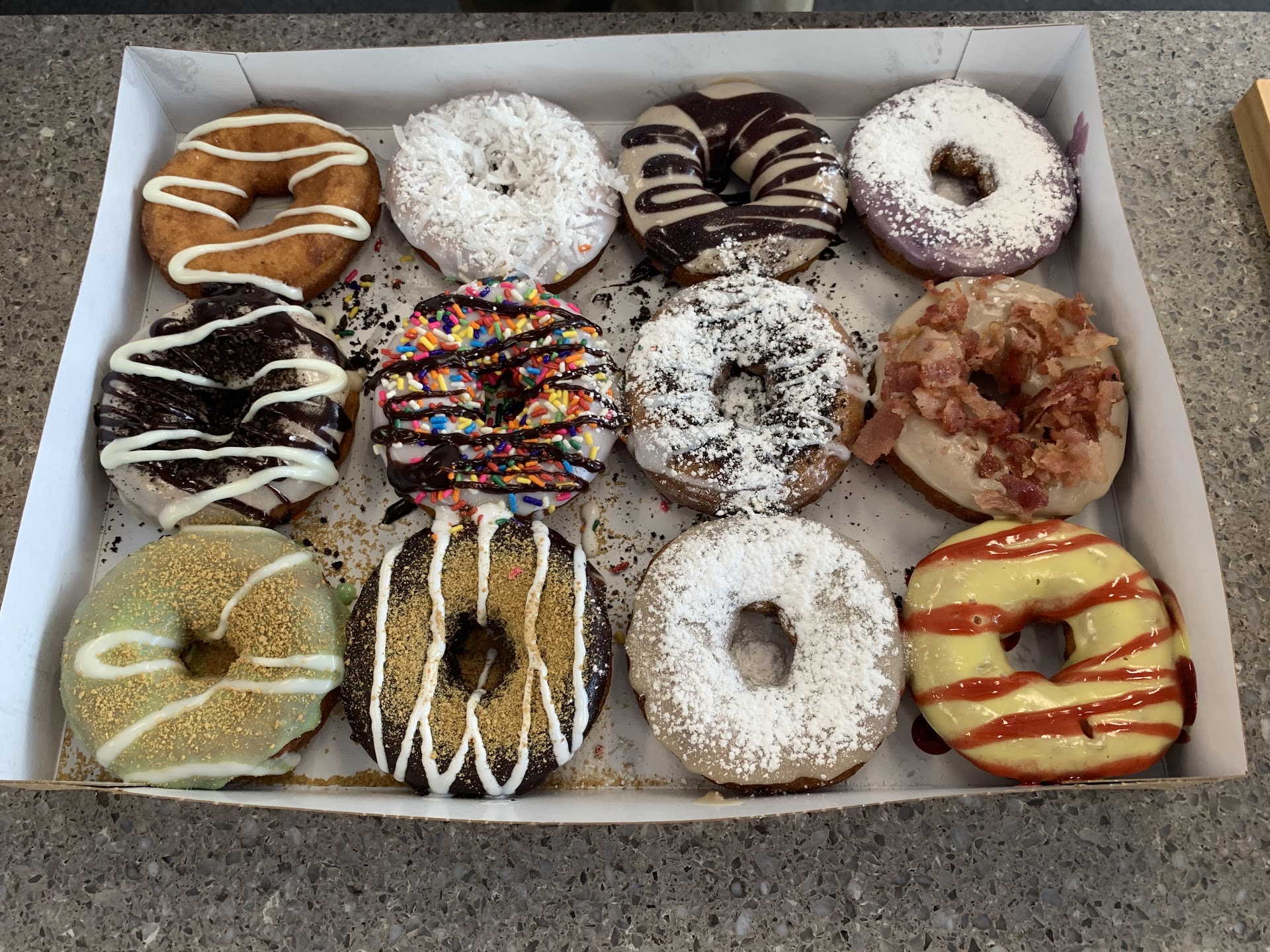 Read moreBest donuts in the area coming from a donut fan! I like how you can mix and match your favorite sweet ingredients on the cake batter. I ordered 18 donuts for a little over $20 with tax. This gives you the most value when sharing with a large party. I ordered everything from maple bacon, cinnamon sugar, chocolate with coconut nuts, strawberry w/ sprinkles, Friday donut of the day Reeses, vanilla with sprinkles, orange with coating (creamsicle), lemon with coconut, blueberry icing with coconut (fan favorite from the staff). Staff is very friendly. You can tell them your favorite flavors and they'll help you place your order. Donuts are made in front of you and the staff lets you see the final product before walking out. These donuts are well worth it at around $1.35. You get a delicious soft texture with the sweetness of the cake batter. Donuts are made fresh and haven't been sitting around all day. I came during a busy after school Friday afternoon. Even with the large groups of students here I was able to order and have my donuts in under 10 minutes. These donuts are best served at home microwaved at 8 seconds with a glass of milk. They do change their menu every so often. I'll be back to try some other...