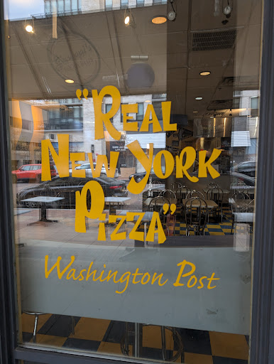 Read moreThe first time I stumbled onto this pizza spot was about 5 years ago. I'm from New York and I had been searching the DMV for good NYC styled pizza place for some time. This was the first place that sold pizza by the slice [not jumbo size] and had a similar cheese and thin crunchy crust like the mom and pop shops back in NYC. At the time they also sold Birch Beer which was a plus. I went back recently and they no longer sell Birch Beer, but they do have root beer. The pizza still has that thin crispy crust and stringy cheese that I like. I ordered the lunch special, which is essentially two slices and a soda for about $6 . As you can see from my pics, they didn't skim on the the extra toppings I added. My only gripe is that the toppings aren't baked in when the pizza is originally cooked. Instead, the pizza is reheated with the toppings added on top. [Just a for warning for those who may care about that sort of thing.] With that aside, I still enjoyed the crunchy crust and stringy cheese goodness that lingered as I took my first bite. Next time I'll probably just get plain cheese. Also, I love that they have parmesan, oregano, red pepper flakes, AND garlic powder! So many pizza places don't have all four of these condiments in the DMV! I got there around 11:30am; just before the lunch crowd of what appeared to be mostly teenagers and a few construction workers. The location has plenty of space for a large groups and bar height seating to individuals. There's even outdoor seating So I'm sure this place is busy during the summer, especially with the movie theater...